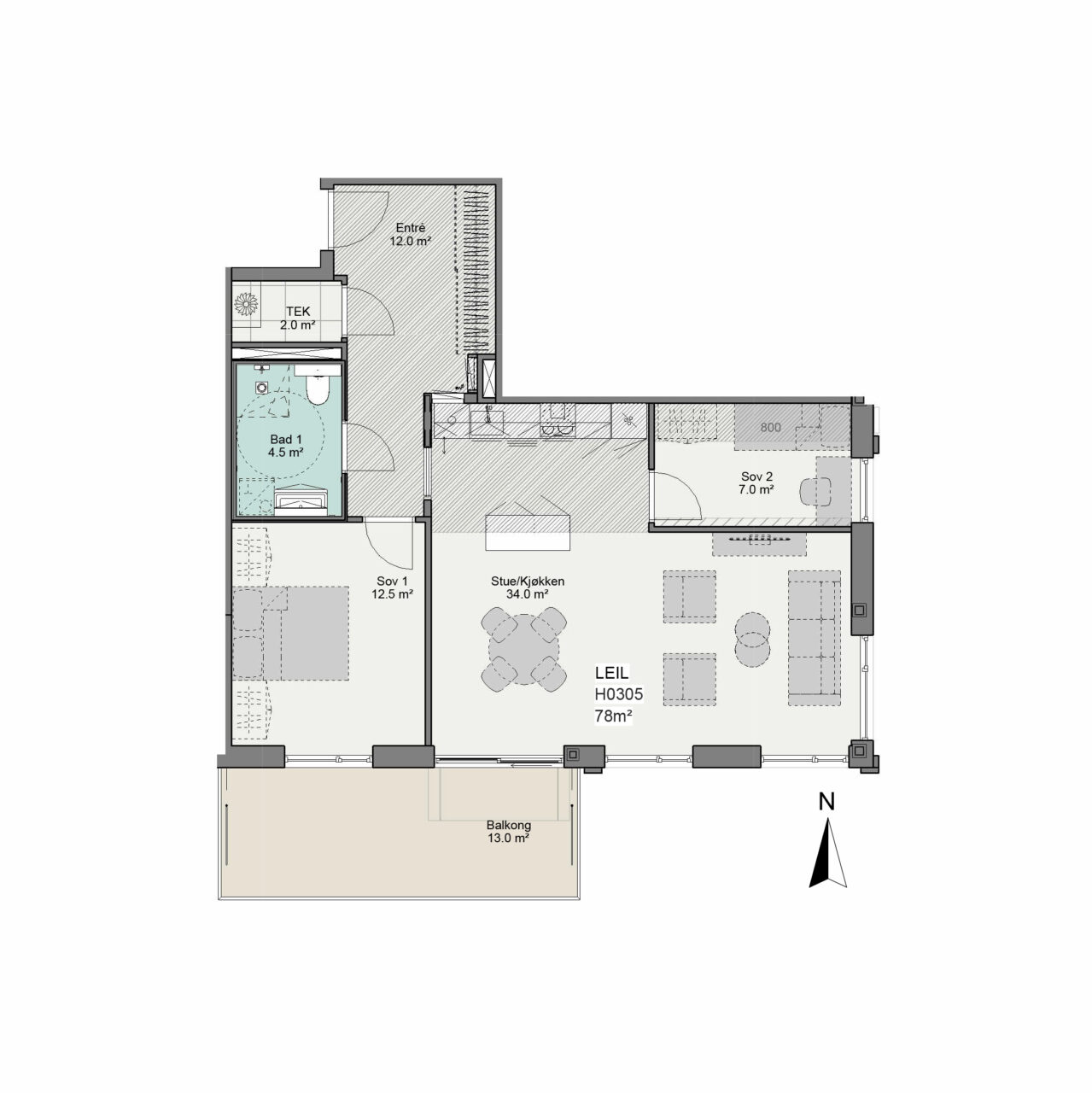 Det leveres kjøkken fra HTH eller Sigdal med integrerte hvitevarer fra Bosch eller tilsvarende. I forbindelse med tilvalg vil det bli utarbeidet egne kjøkkentegninger fra leverandør med mulighet for individuelle tilpasninger (fronter, benkeplate m.m.) mot pristillegg. Plassering av ventilator, koketopp og vask kan ikke endres.
