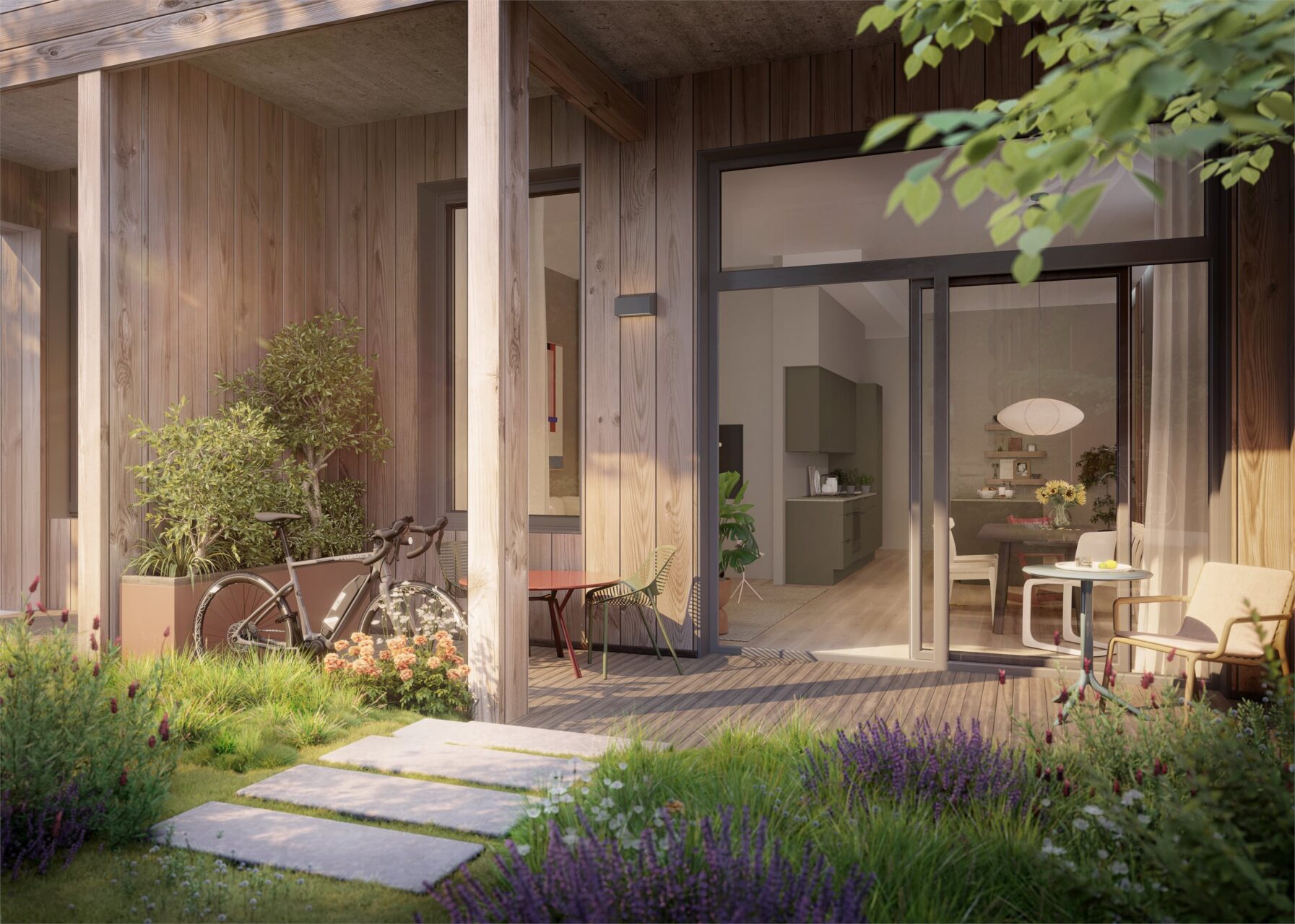 De 168 leilighetene i Timbre ligger perfekt til der Lillestrøms sjarmerende trehusbebyggelse møter den nye, mer urbane byen.