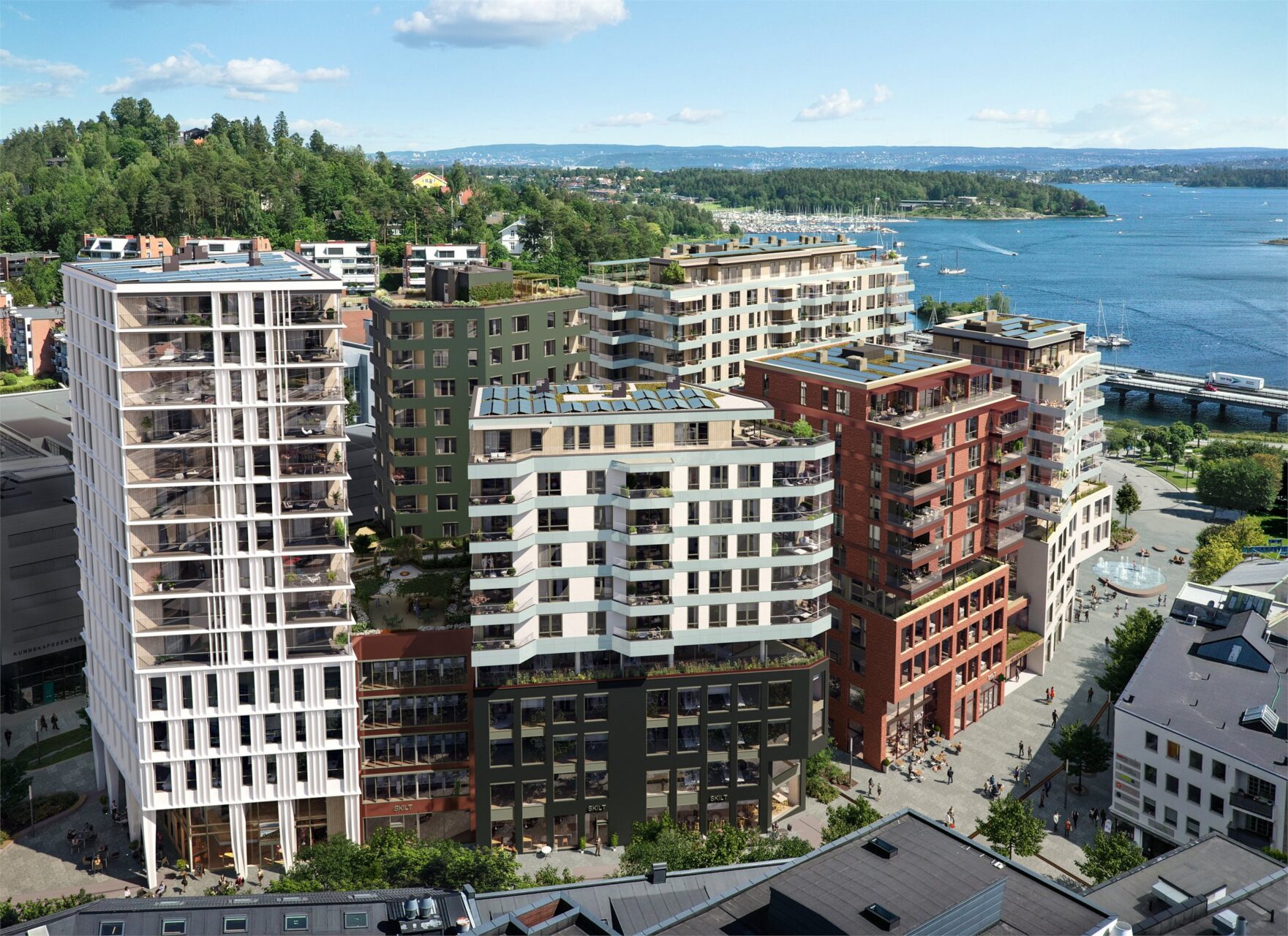 Alle leilighetene ligger høyt over bygulvet, og flere med fjordutsikt. Her kan du finne deg en bolig du aldri har sett maken til tidligere, med en kvalitet på materialer og finisher du vil nyte å ha rundt deg. Samtlige leiligheter får egen uteplass, tilgang til felles takhage i 6. etasje og felles takterrasse i 14. etasje.