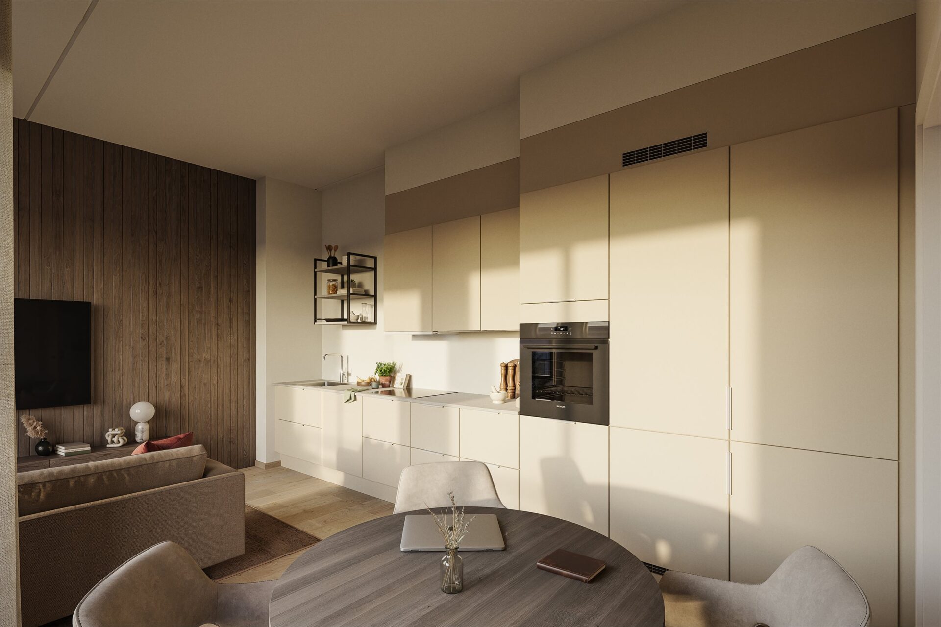 HTH er valgt som kjøkkenleverandør for prosjektet, og leveransen omfatter det som er spesifisert i leilighetsplanen og romskjemaet. En detaljert kjøkkentegning vil medfølge kontraktsdokumentene. Det leveres integrerte hvitevarer fra Bosch, Siemens eller likeverdig.