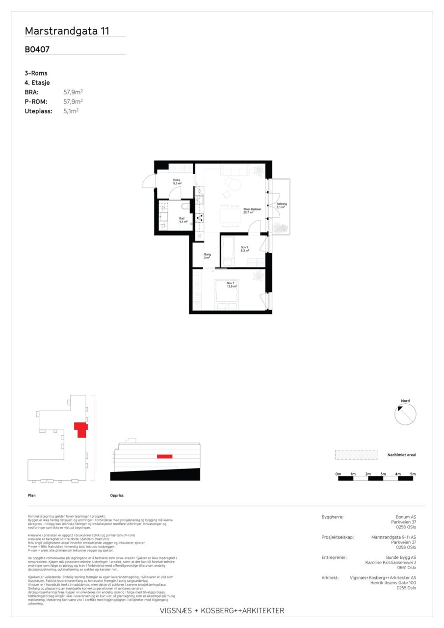 Prosjektet vil inneholde 73 leiligheter, samt næringslokale i 1 etasje. Det vil være god variasjon av leilighetstyper som 2-roms fra 37 kvm til 4-roms leiligheter opp mot 118 kvm, enkelte med utleiemulighet. Flere av 4-romsene har inntrukket takterrasse rett ut fra leiligheten eller privat takterrasse på toppen av bygget. Det blir flotte fellesområder både på tak og i bakgård.