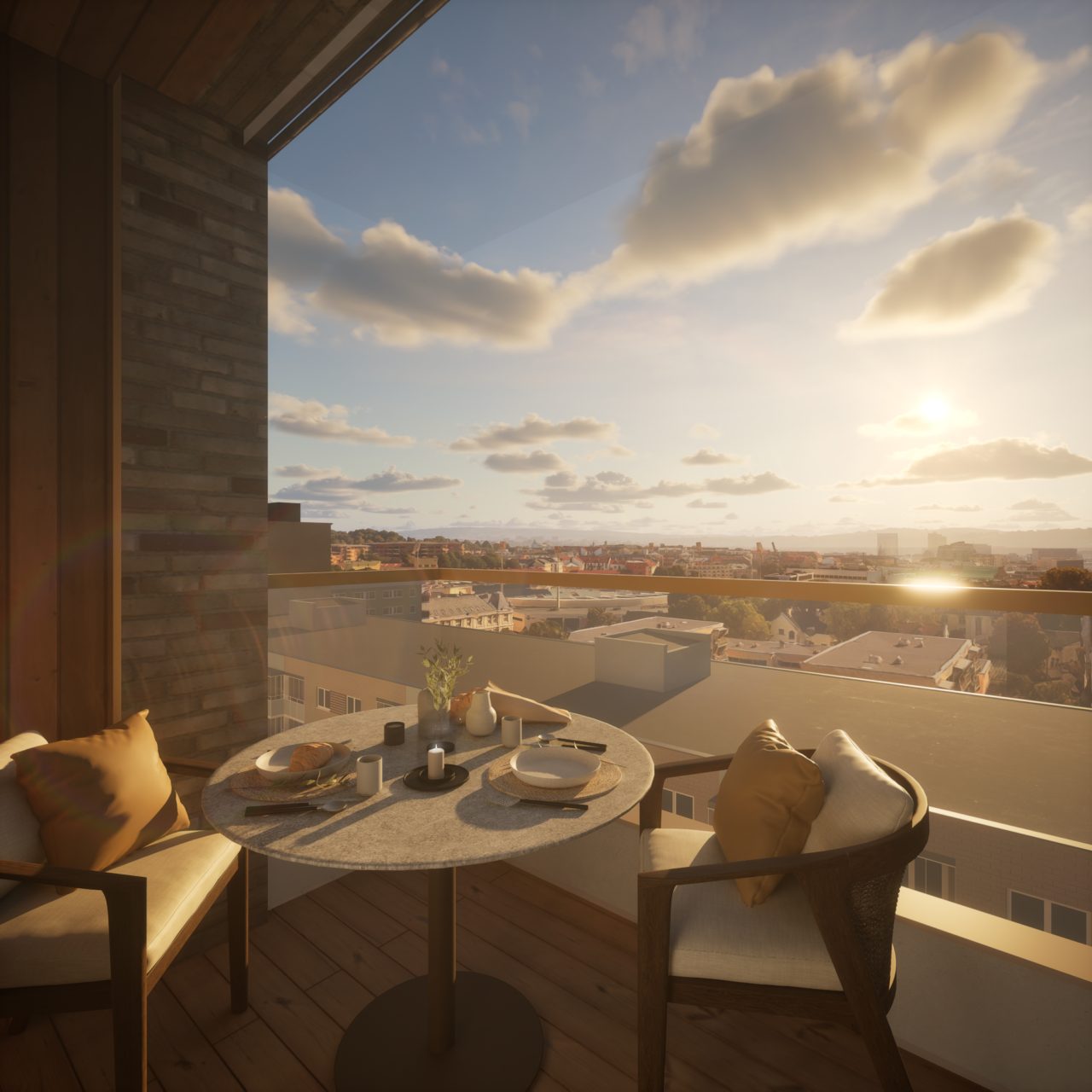 Alle leilighetene (med noen unntak) får balkonger eller inntrukne takterrasser. Vær oppmerksom på at tilnærmelsesvis lik leilighet kan ha varierende balkongutforming. Sjekk derfor nøye den enkelte leilighets salgstegning.