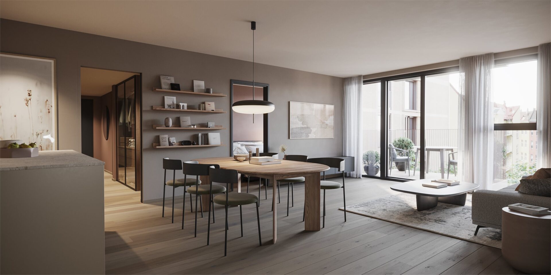 Skillevegger på balkonger der dette er vist, kun mellom leiligheter som har balkong/takterrasse helt inntil hverandre. Det leveres ikke skillevegger ved separate balkonger, uansett avstand mellom disse.