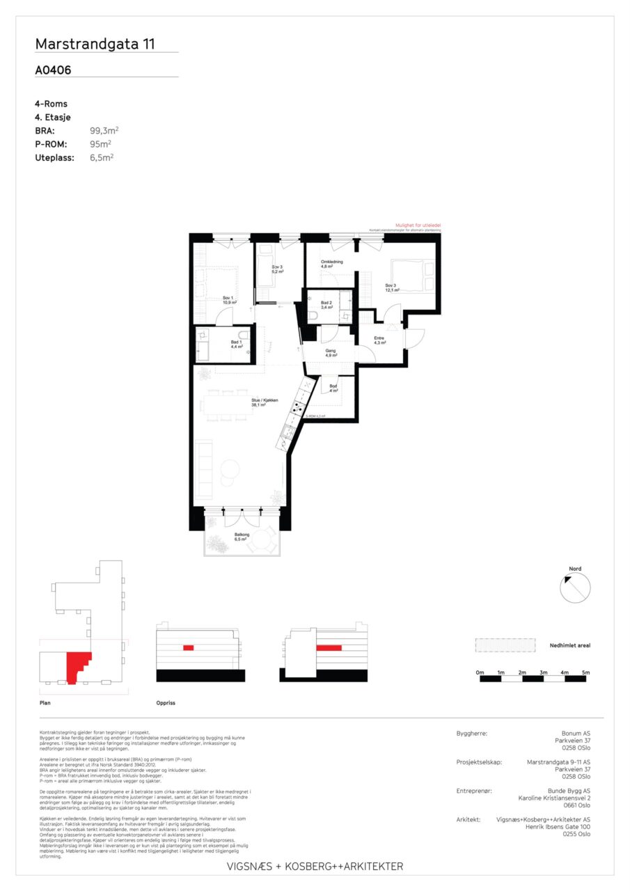 Prosjektet vil inneholde 73 leiligheter, samt næringslokale i 1 etasje. Det vil være god variasjon av leilighetstyper som 2-roms fra 37 kvm til 4-roms leiligheter opp mot 118 kvm, enkelte med utleiemulighet. Flere av 4-romsene har inntrukket takterrasse rett ut fra leiligheten eller privat takterrasse på toppen av bygget. Det blir flotte fellesområder både på tak og i bakgård.