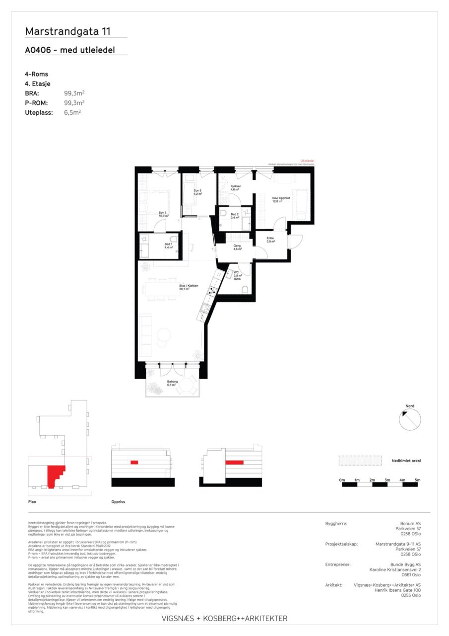 Entre leder til romslig soverom med walk in closet. Videre kommer man til en mellomgang med adkomst til boligens ene bad, samt romslig innvendig bod. Man ledes videre inn til boligens to øvrige soverom der det ene er romslige 10,9 kvm og har eget privat bad. Stue- og kjøkkensonen er 38 kvm og har naturlige møbleringssoner, samt utgang til sydvendt balkong på 6,5 kvm. Det er mulighet for å etablere utleiedel i soverom med adkomst fra entré ved å snu badet. Kontakt megler hvis en slik løsning er aktuell.