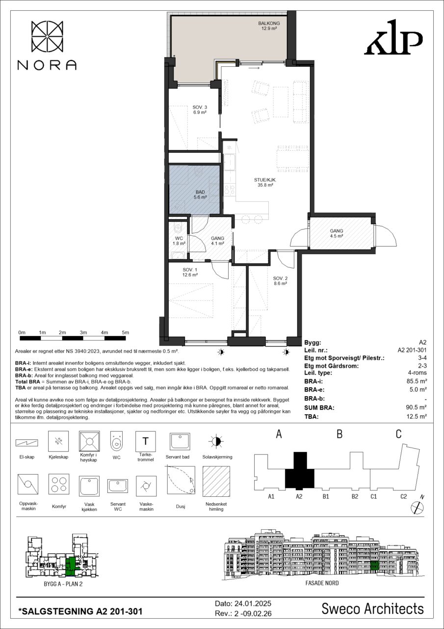Det er gitt totalt 5 dispensasjoner fra reguleringsplanen og kommuneplanen i rammetillatelsen for NORA Bolig. Rammetillatelsen er vedlagt kjøpekontrakten. Det prosjekteres og bygges i henhold til Byggeteknisk forskrift TEK17. Selger har ansvaret for at det foreligger brukstillatelse på leiligheten senest ved kjøpers overtagelse av leiligheten. Etter pålegg fra Finanstilsynet rettet mot samtlige meglerforetak (ref. rundskriv 21 / 2011) informeres ved dette om at det per dato for overtakelse av den enkelte boligseksjon ikke vil foreligge ferdigattest, samt at ferdigattest først vil foreligge lang tid etter overtakelse. Bakgrunnen er at deler av de arbeider som er påkrevet for å få ferdigattest, ikke vil være ferdig per dato for overtakelse av den enkelte boligseksjon.
