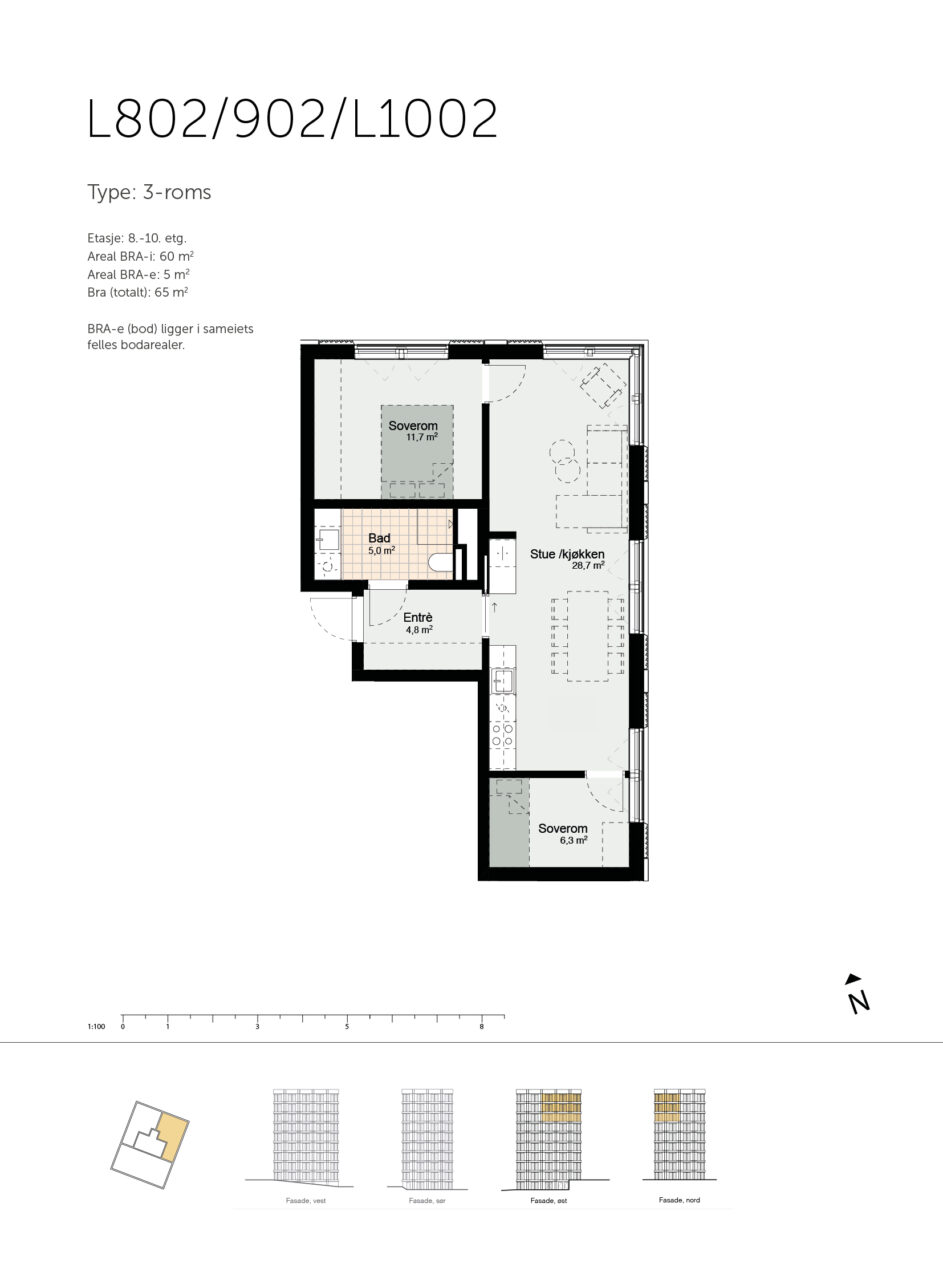 Salgstegninger ligger i boligvelger. Kontraktstegning for den enkelte leilighet kan lastes ned via prosjektets boligvelger eller tilsendes ved henvendelse til megler. De oppgitte arealer er å betrakte som cirka-arealer. Arealer er beregnet og avrundet etter NS3940:2023, og alle arealer følger normal avrundingsregel og avrundes til nærmeste hele kvm.