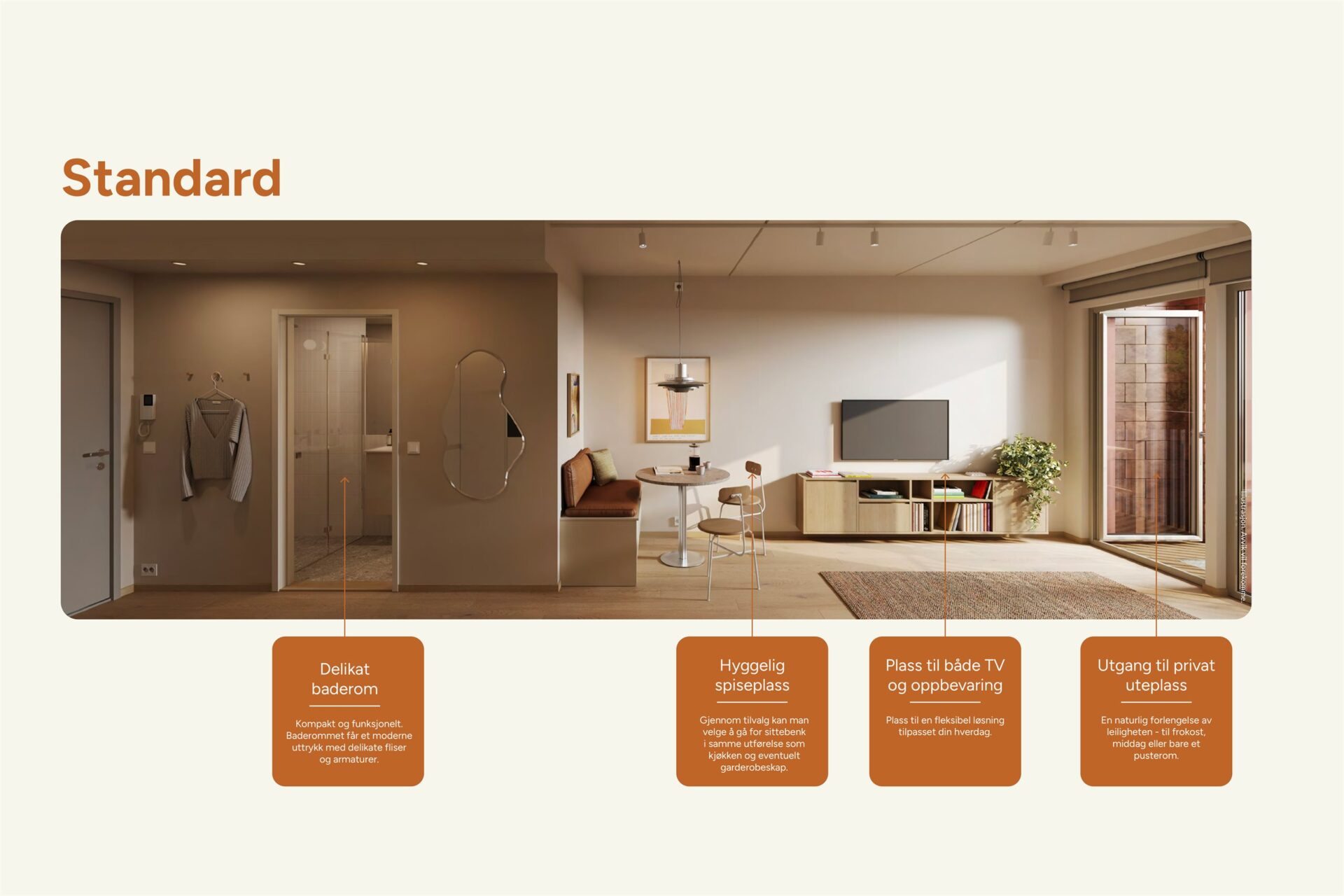 Kjøpere får anledning til å sette sitt personlige preg på leiligheten gjennom tilvalg. Kjøper vil få anledning til å gjøre tilvalg i henhold til prosjektets tilvalgsmeny mot tillegg i pris. Tilvalg gjøres gjennom en digital plattform. Alle leilighetskjøpere vil få mulighet til et personlig tilvalgsmøte med prosjektets kunderådgiver. Frist for bestilling av tilvalg er 22. mars 2026.