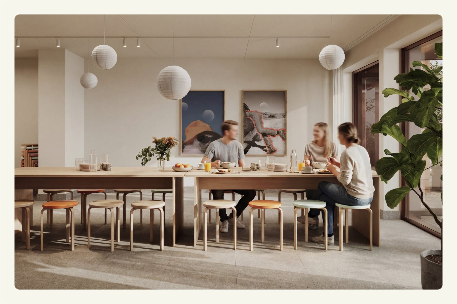 Delearealene og fellesarealene fungerer som en naturlig forlengelse av hjemmet ditt, som beboer i Studio Poulsson får du tilgang til eksklusive deleareal: