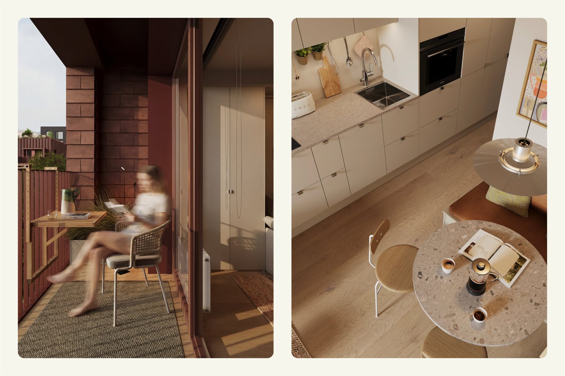 Studio Poulsson består av komplette 1-roms leiligheter på 20 til 25 m² med privat kjøkken/stue, bad og uteplass. Hver leilighet er utformet med smarte løsninger som utnytter arealet effektivt, samtidig som tilhørende delearealer gir deg ekstra rom når behovet oppstår. Resultatet er et selvstendig hjem med tilgang til mer – i et levende bomiljø i Poulssons Kvarter.
