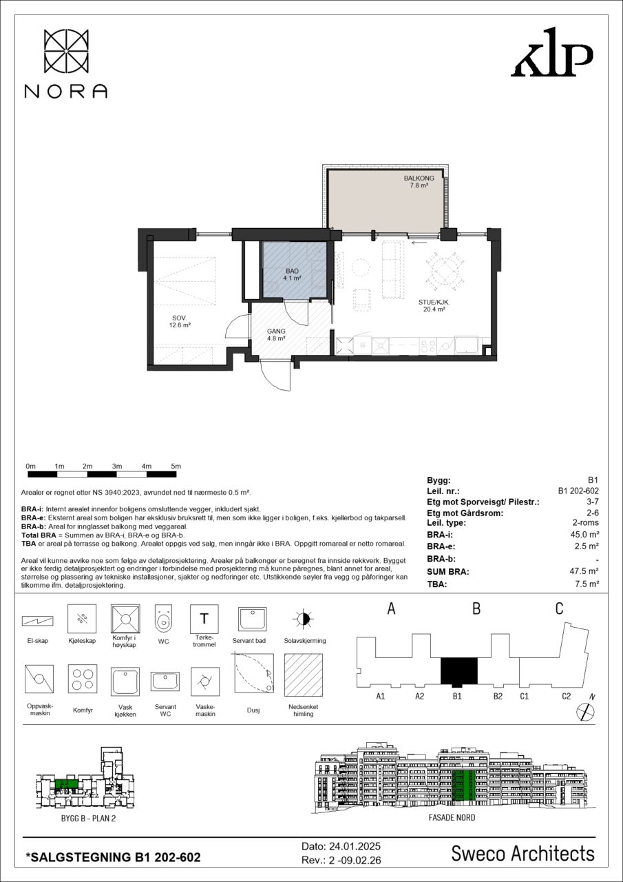 Det er gitt totalt 5 dispensasjoner fra reguleringsplanen og kommuneplanen i rammetillatelsen for NORA Bolig. Rammetillatelsen er vedlagt kjøpekontrakten. Det prosjekteres og bygges i henhold til Byggeteknisk forskrift TEK17. Selger har ansvaret for at det foreligger brukstillatelse på leiligheten senest ved kjøpers overtagelse av leiligheten. Etter pålegg fra Finanstilsynet rettet mot samtlige meglerforetak (ref. rundskriv 21 / 2011) informeres ved dette om at det per dato for overtakelse av den enkelte boligseksjon ikke vil foreligge ferdigattest, samt at ferdigattest først vil foreligge lang tid etter overtakelse. Bakgrunnen er at deler av de arbeider som er påkrevet for å få ferdigattest, ikke vil være ferdig per dato for overtakelse av den enkelte boligseksjon.