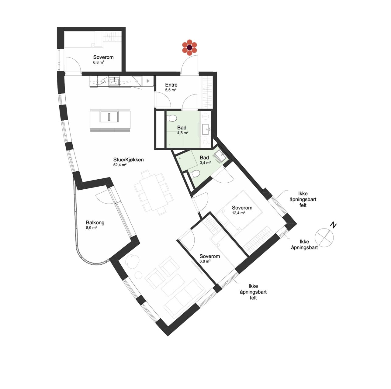 For mer informasjon se leveransebeskrivelse og romskjema.