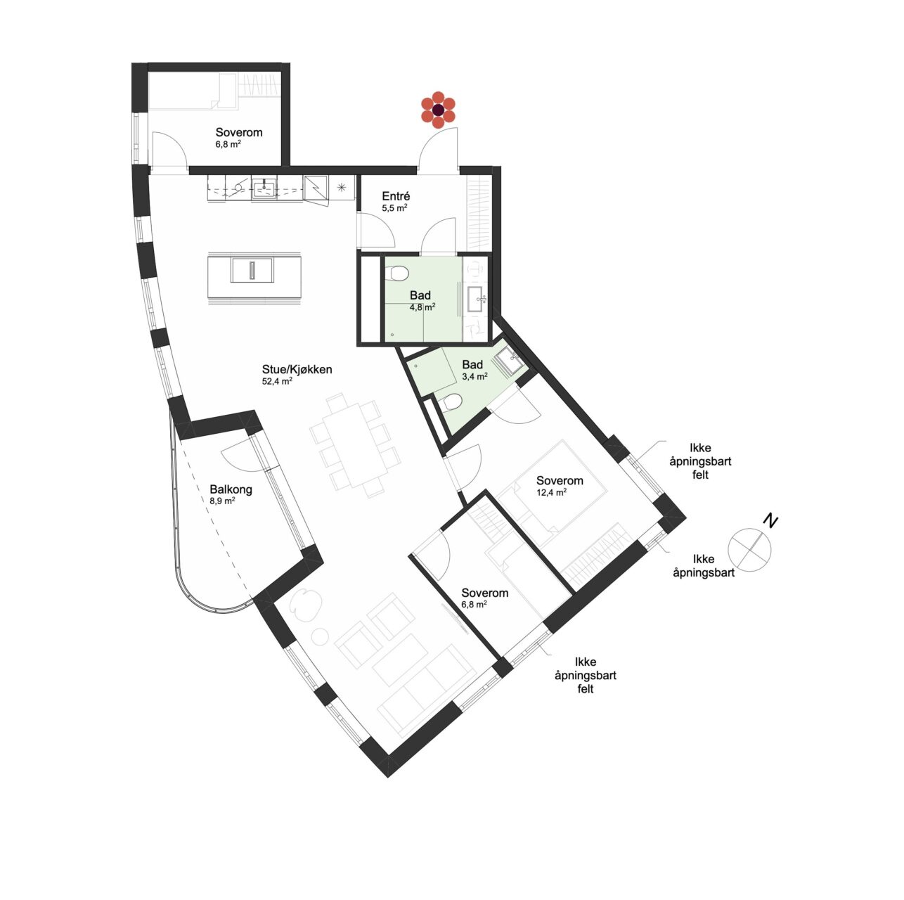 For mer informasjon se leveransebeskrivelse og romskjema.
