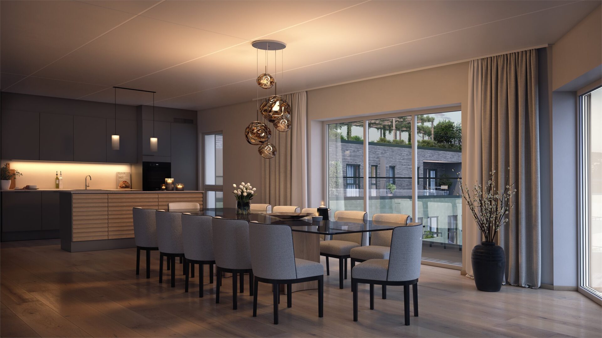 Her finner du gjennomtenkte selveierleiligheter fra 2-roms på 38 kvm til toppleilighet på 151 kvm, og selvsagt mange alternativer i mellom. Den enkelte leilighet er nøye planlagt med mål om å skape gode hjem. Planløsningene er gode og effektive med fokus på boligens hjerte, allrommet. Alle leiligheter leveres med et helhetlig interiørkonsept i nordisk stil. Blant annet leveres enstavs eikeparkett, gulvfliser i entré, massivdører, og kjøkken fra HTH med integrerte hvitevarer fra Miele. Ytterligere tilpasninger er mulig i tilvalgsprosessen.