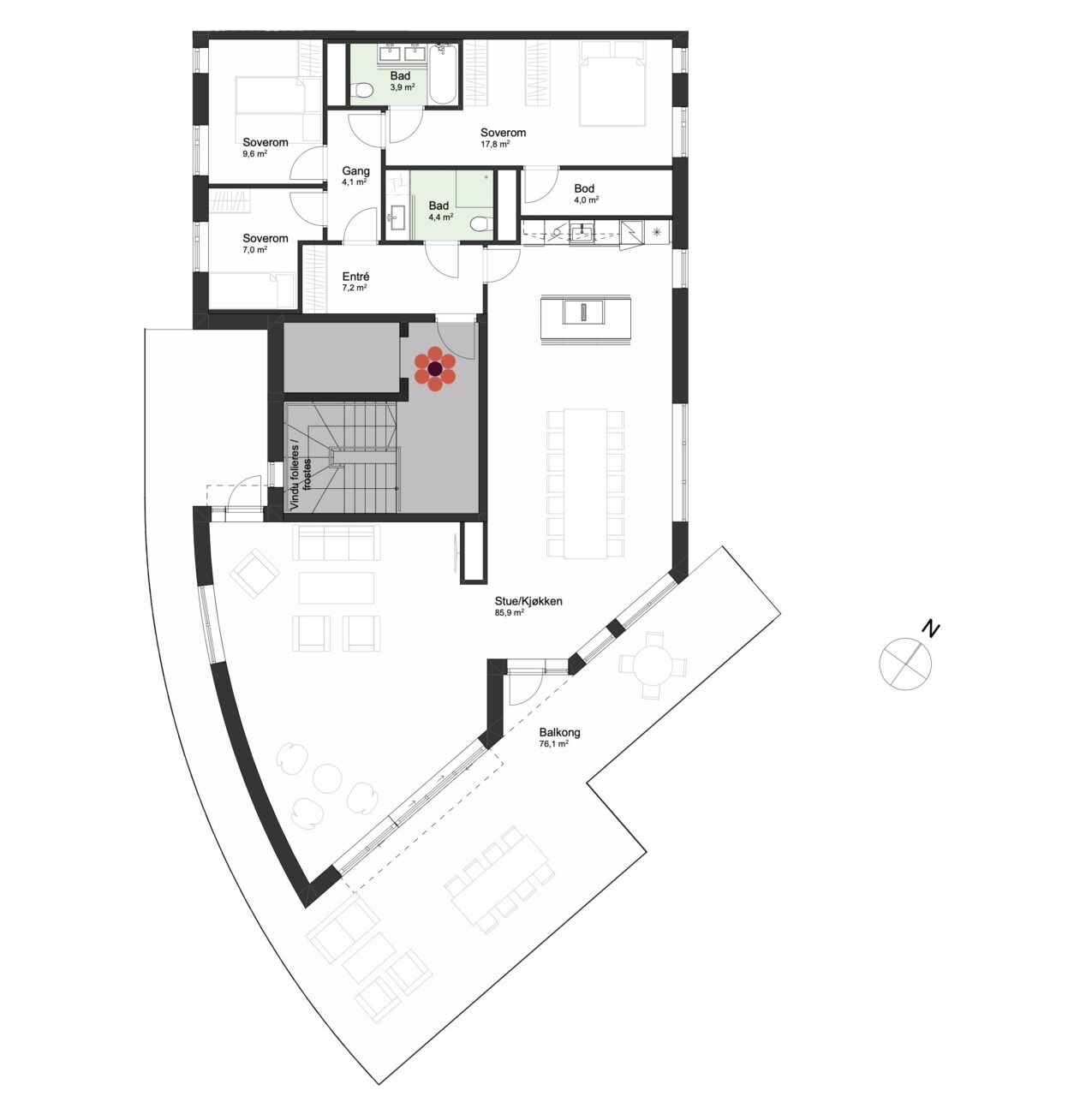 For mer informasjon se leveransebeskrivelse og romskjema.