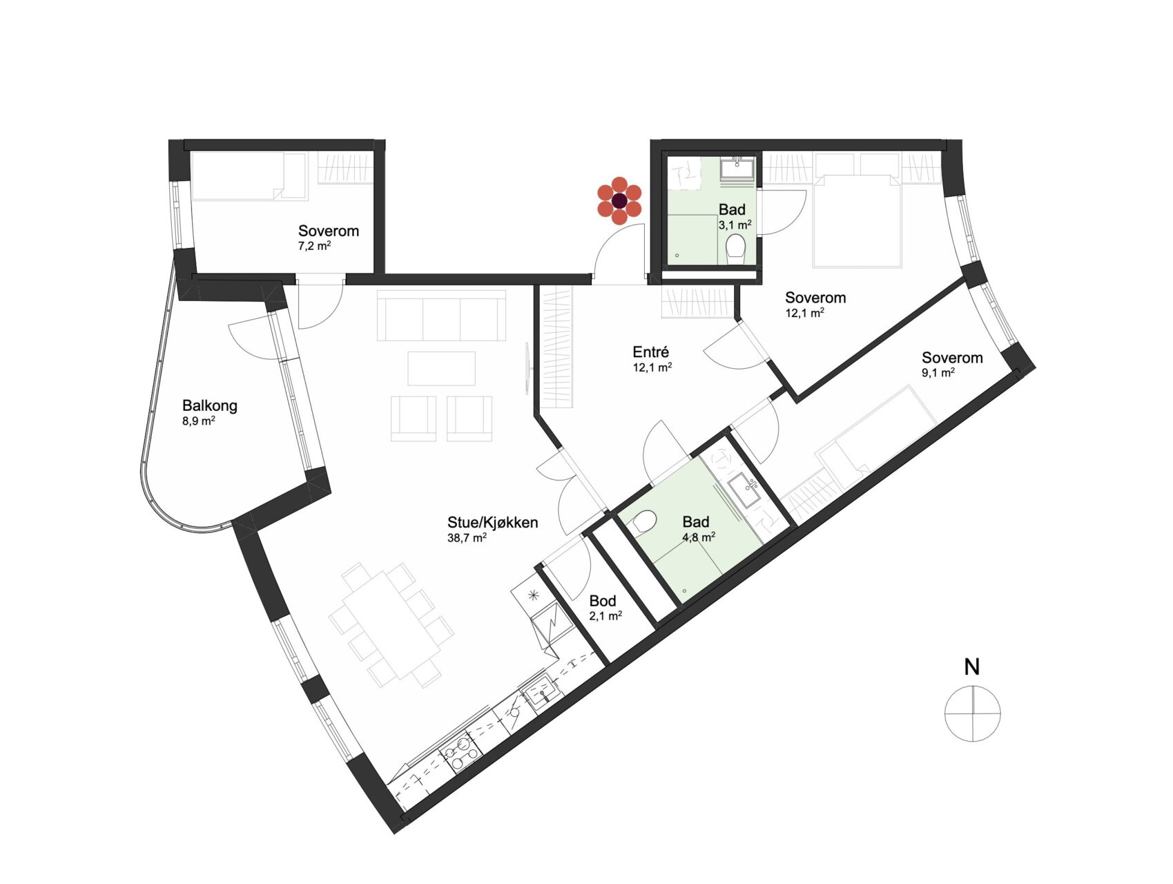 For mer informasjon se leveransebeskrivelse og romskjema.