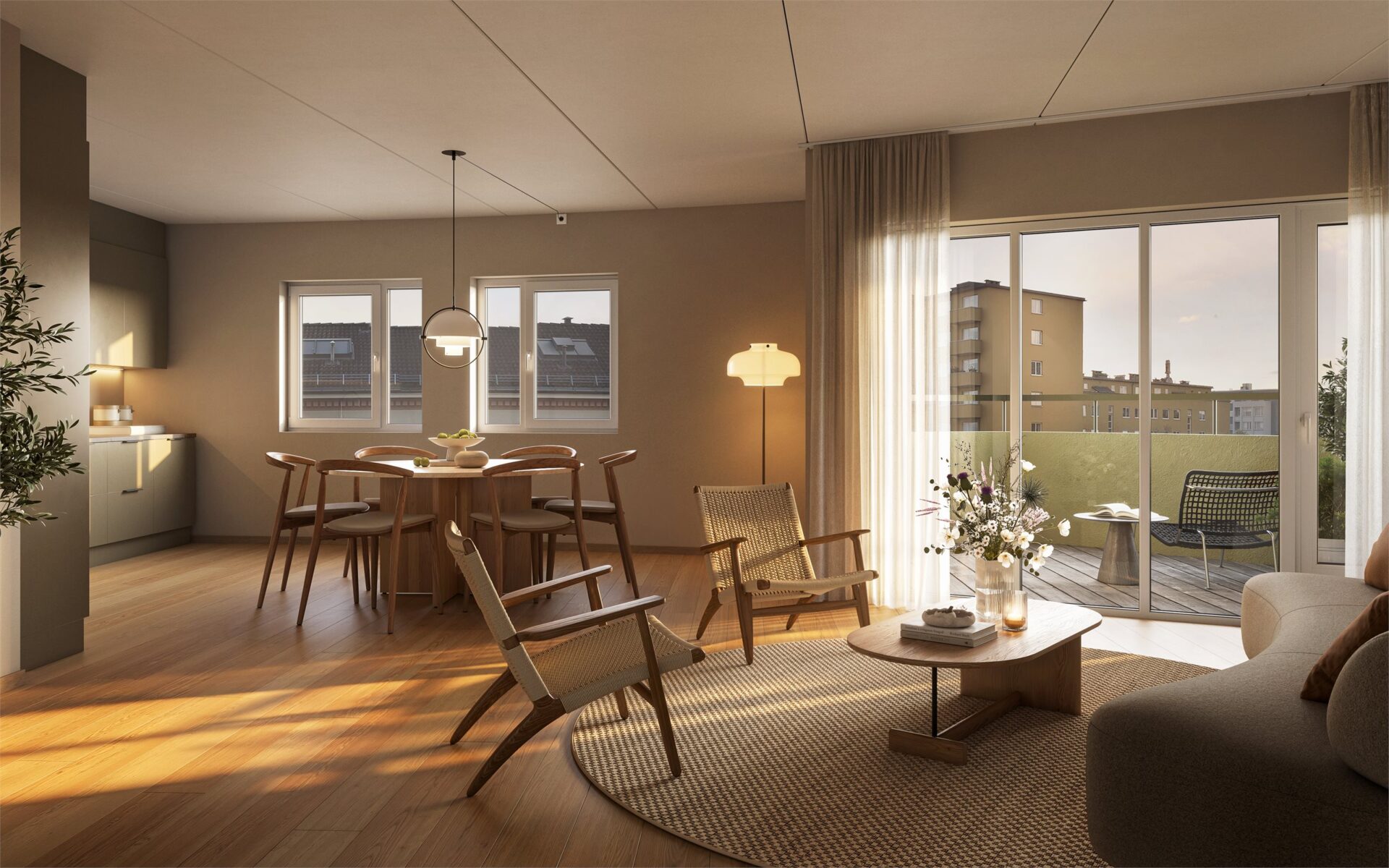 Her finner du gjennomtenkte selveierleiligheter fra 2-roms på 38 kvm til toppleilighet på 151 kvm, og selvsagt mange alternativer i mellom. Den enkelte leilighet er nøye planlagt med mål om å skape gode hjem. Planløsningene er gode og effektive med fokus på boligens hjerte, allrommet. Alle leiligheter leveres med et helhetlig interiørkonsept i nordisk stil. Blant annet leveres enstavs eikeparkett, gulvfliser i entré, massivdører, og kjøkken fra HTH med integrerte hvitevarer fra Miele. Ytterligere tilpasninger er mulig i tilvalgsprosessen.