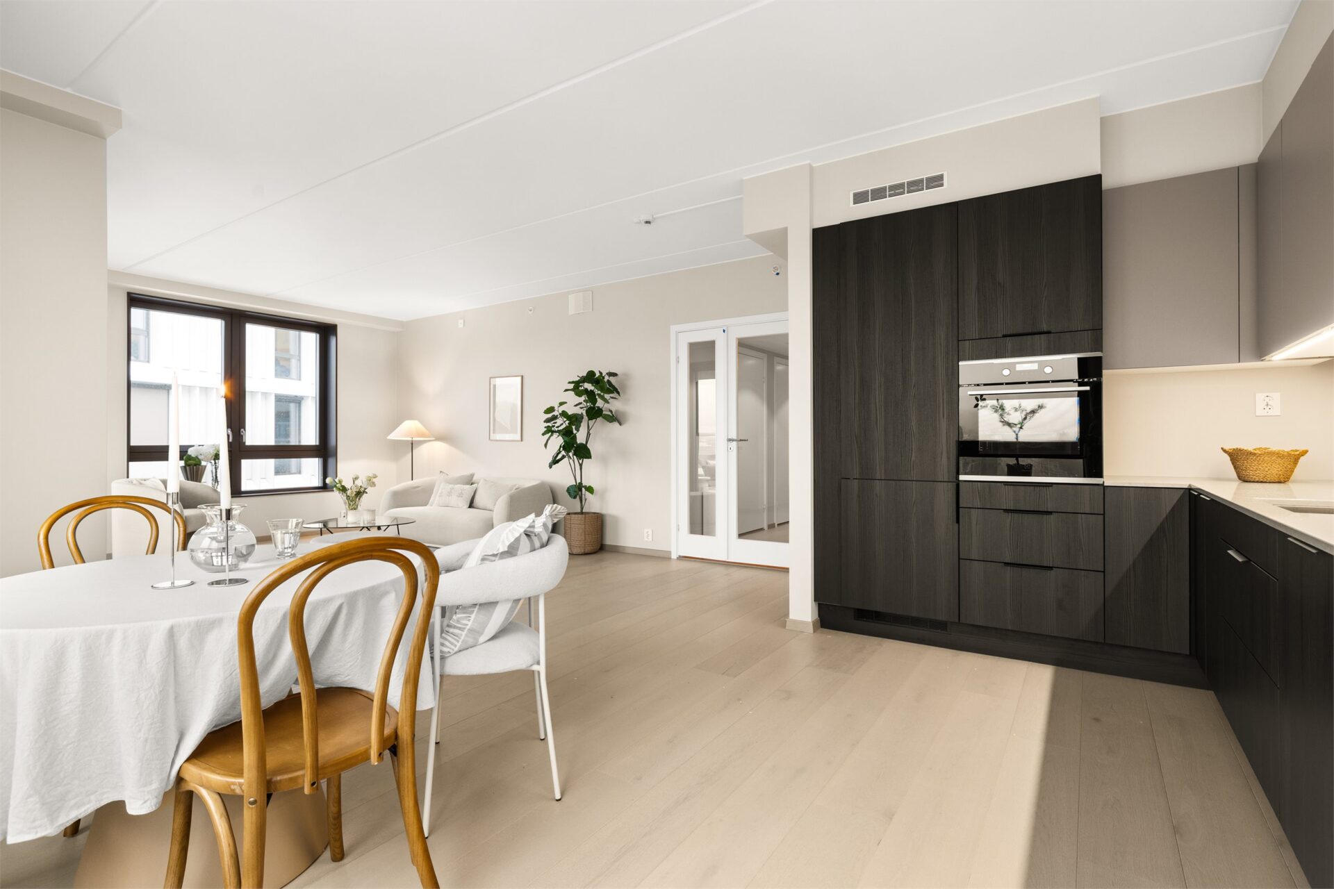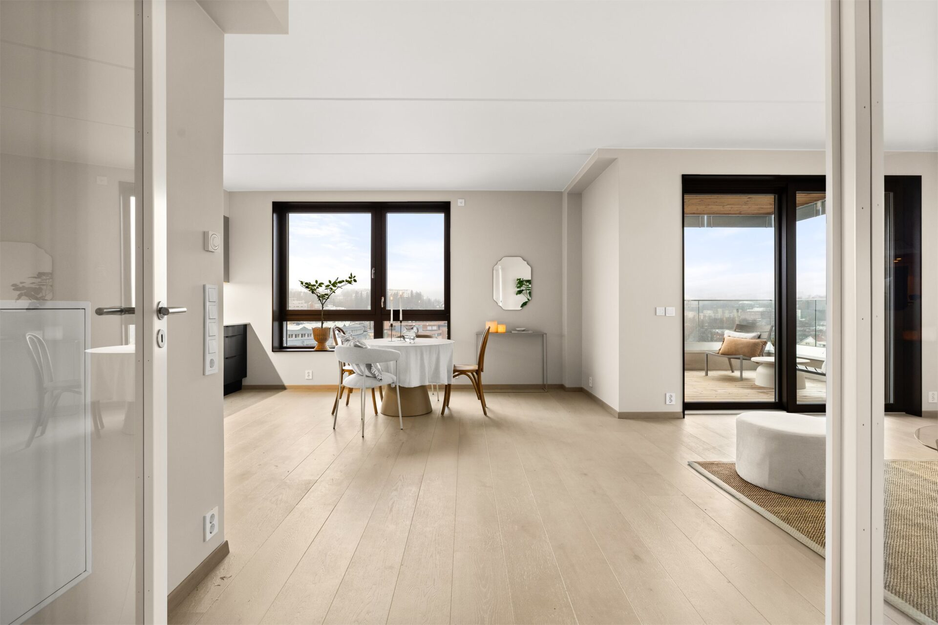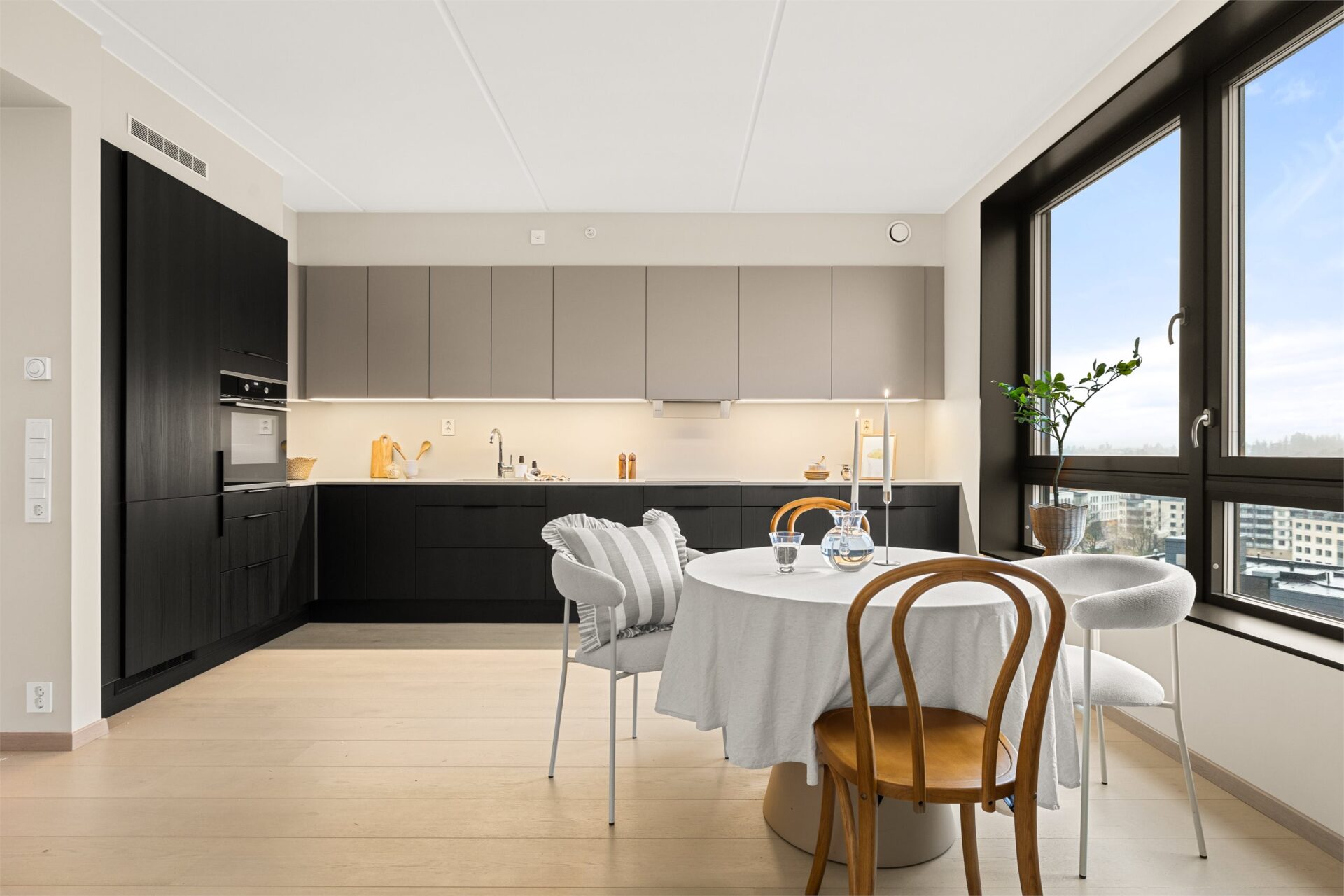 Alle leilighetene ligger høyt over bygulvet, og flere med fjordutsikt. Her kan du finne deg en bolig du aldri har sett maken til tidligere, med en kvalitet på materialer og finisher du vil nyte å ha rundt deg. Samtlige leiligheter får egen uteplass, tilgang til felles takhage i 6. etasje og felles takterrasse i 14. etasje.