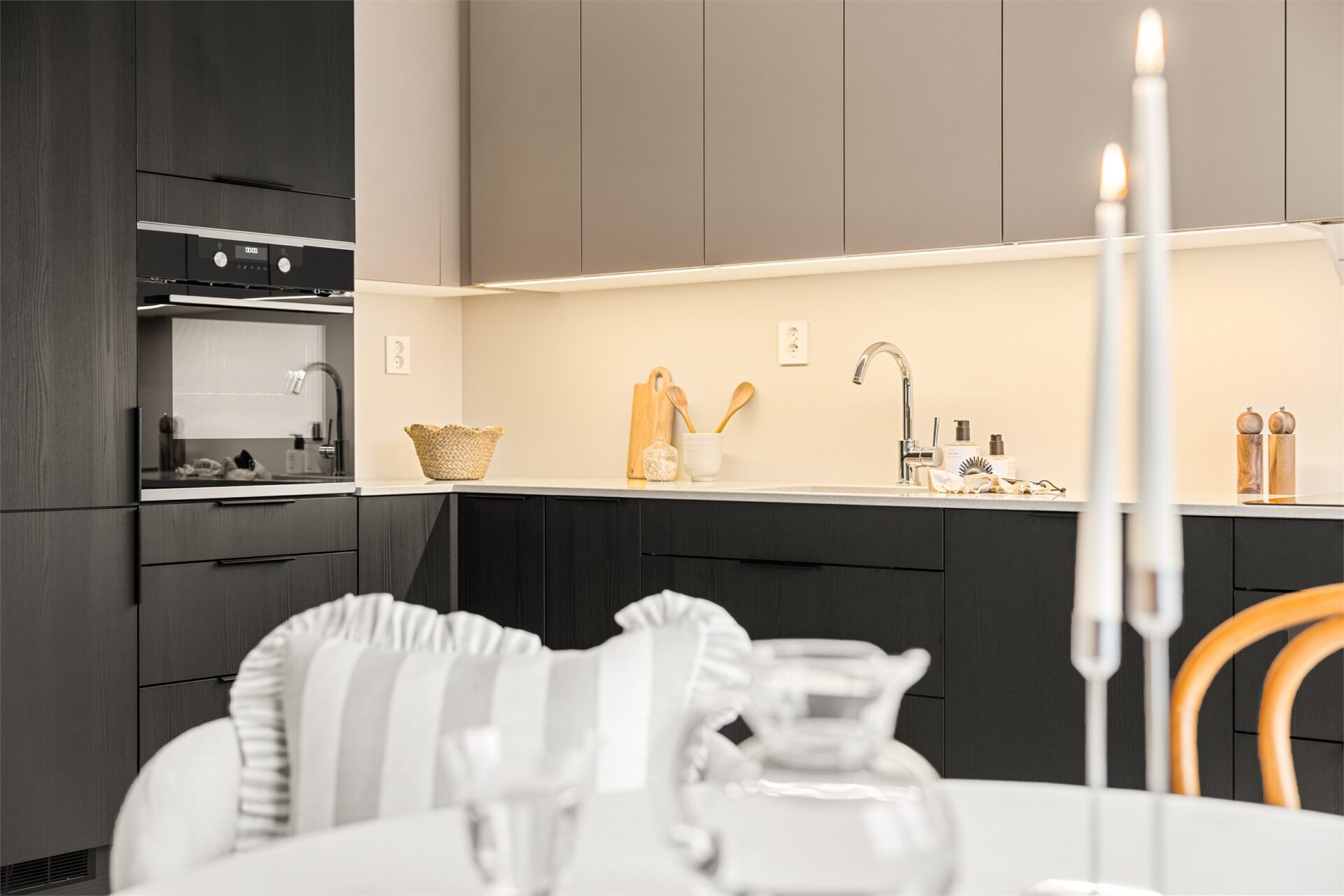 RCO interiørdesign har utviklet konseptet Nordisk eleganse for Helgerudkvartalet, slik at du som boligkjøper kan være trygg på at du får en gjennomført stil. Farger og materialvalg er nøye valgt ut slik at de harmonerer med hverandre og skaper en flott ramme for øvrig interiør.