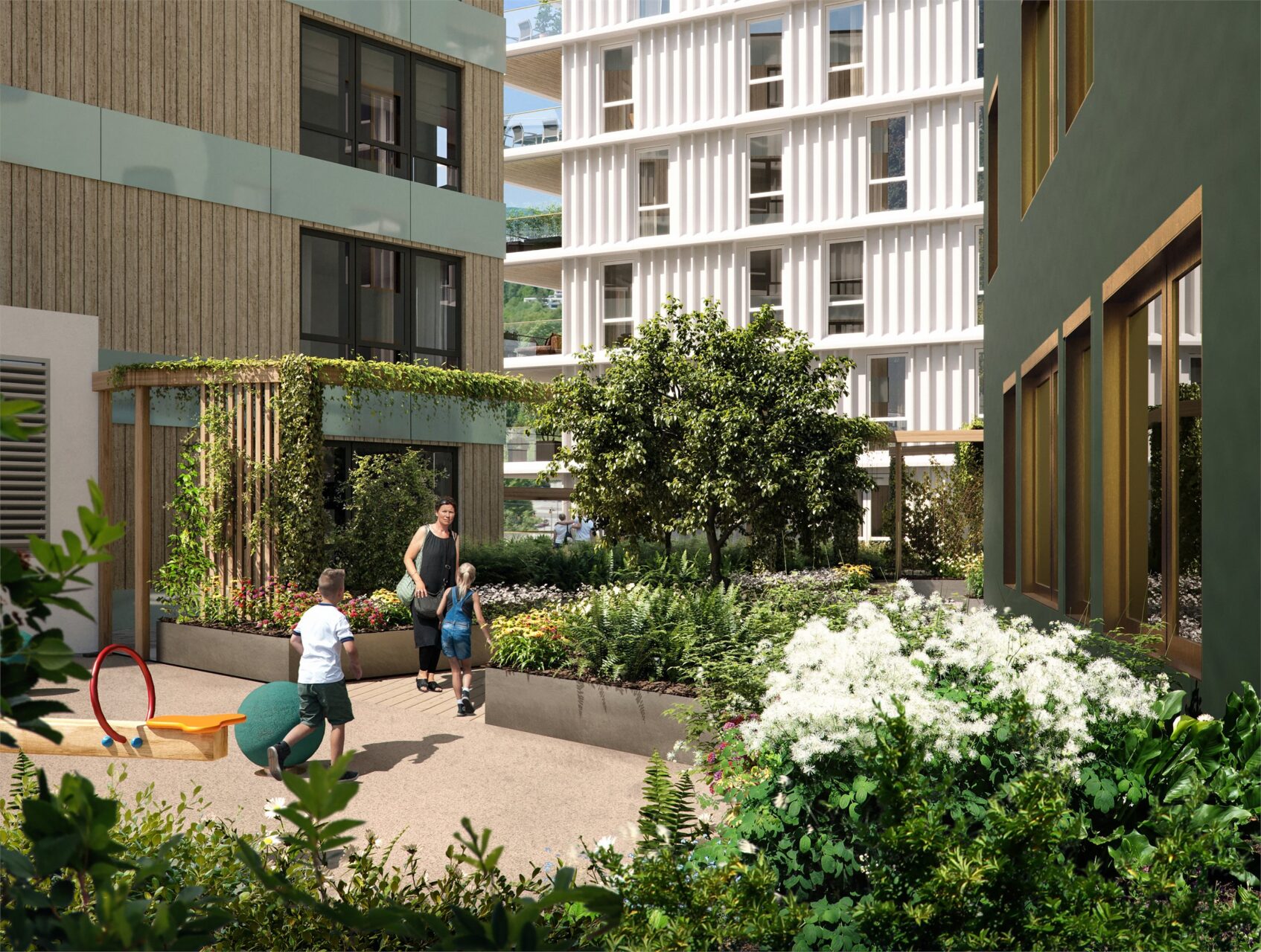 Alle leilighetene ligger høyt over bygulvet, og flere med fjordutsikt. Her kan du finne deg en bolig du aldri har sett maken til tidligere, med en kvalitet på materialer og finisher du vil nyte å ha rundt deg. Samtlige leiligheter får egen uteplass, tilgang til felles takhage i 6. etasje og felles takterrasse i 14. etasje.