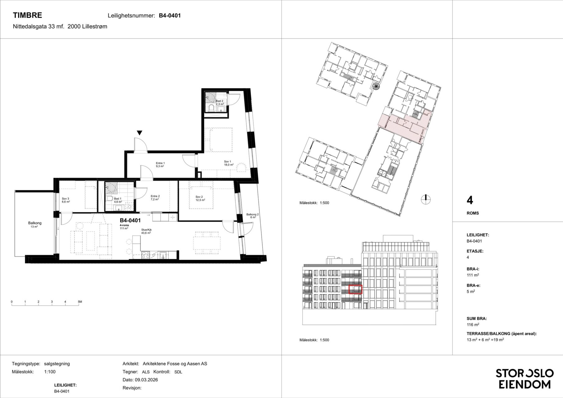 Nittedalsgata bussholdeplass i Adolph Tidemands gate ligger i hjørnet av tomten, og mindre enn 500 m unna finner du toget som tar deg til Oslo S på 10 min og Gardermoen på 12 min. Det betyr at du faktisk kommer deg til sentrum av Oslo langt raskere enn mange som bor i hovedstaden. Lillestrøm er en av Europas fremste sykkelbyer, og Timbre grenser mot flere viktige forbindelsesårer for sykkel. Alle skoletrinn ligger i kort gåavstand, barneskolen bare et par kvartaler unna.