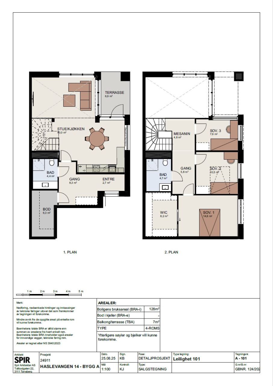 Haslevangen A101 – Stor leilighet på 128 kvm over to plan og ekstra takhøyde i deler av stuen