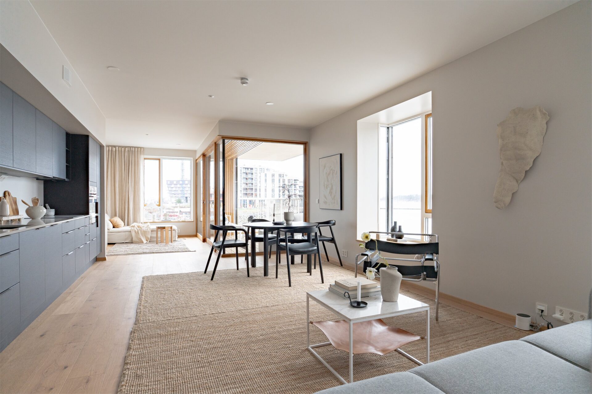 Så og si ingen av leilighetene er like. Noen går over to plan, med en formidabel takhøyde i deler av leiligheten. Felles for alle boligene er funksjonelle planløsninger, gode lysforhold med mye naturlig lys, høy standard på interiør og materialer, og alle leiligheter får privat balkong eller terrasse. Beboerne vil også få tilgang til ulike fasiliteter som et flott fellesrom og kajakker.