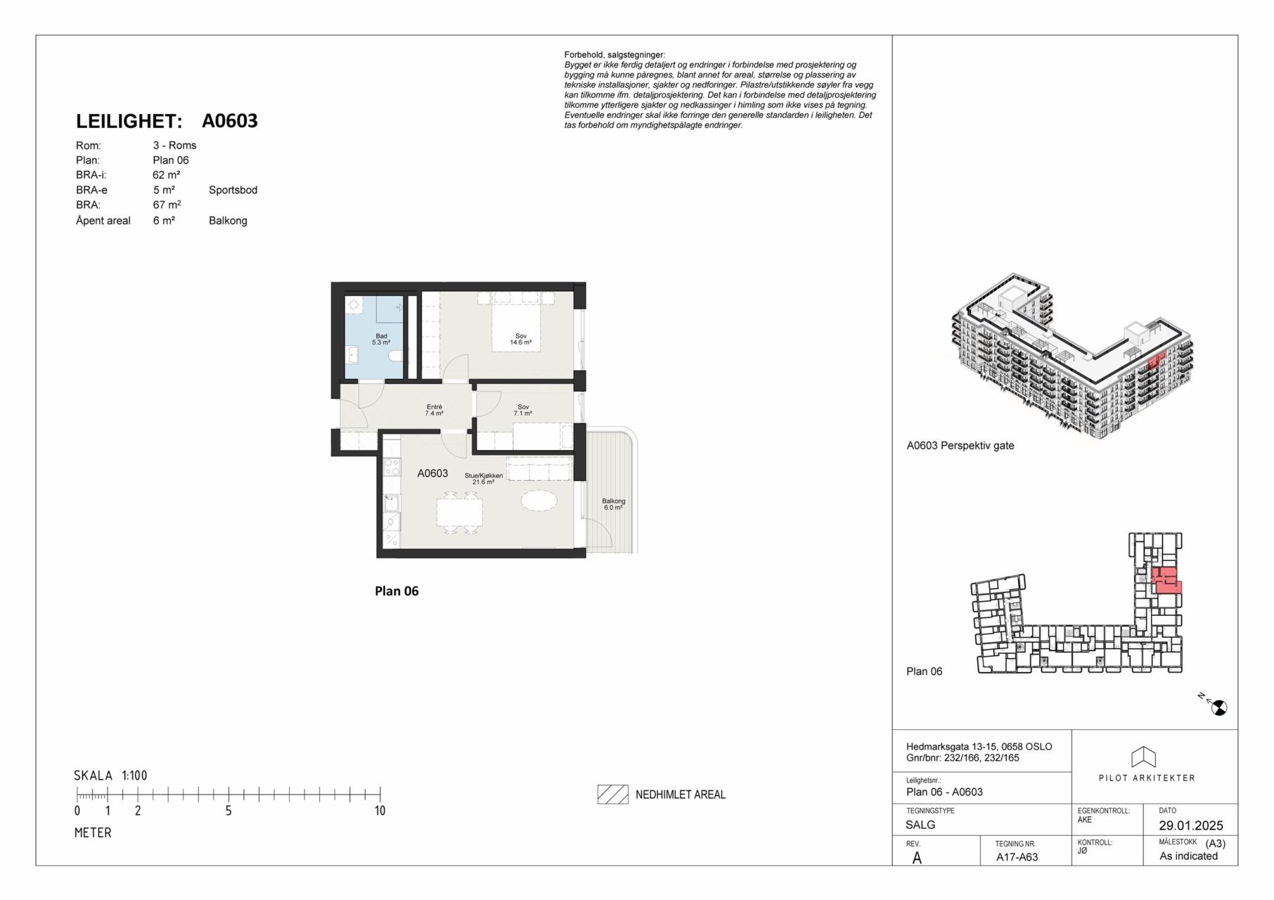Kjøper er gjort kjent med at alle 3D-presentasjoner, digitale modeller, planer, skisser, bilder i prospekt, tilvalgspresentasjon og annet salgsmateriell er av illustrativ karakter, og utarbeidet før gjennomført detaljprosjektering. Materialet kan derfor vise bygningsvolumer, innredning, beplantning og detaljer mv. som ikke inngår i avtalen.