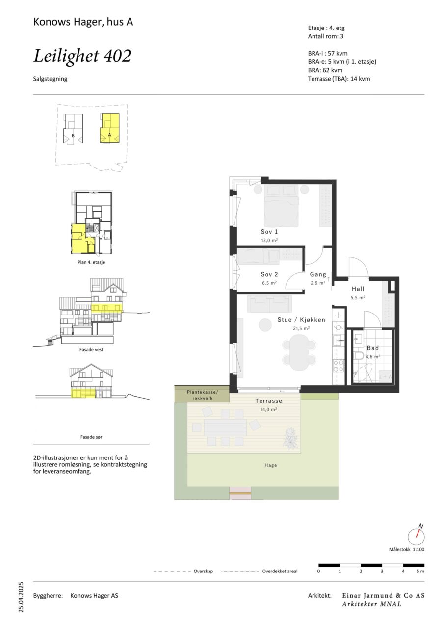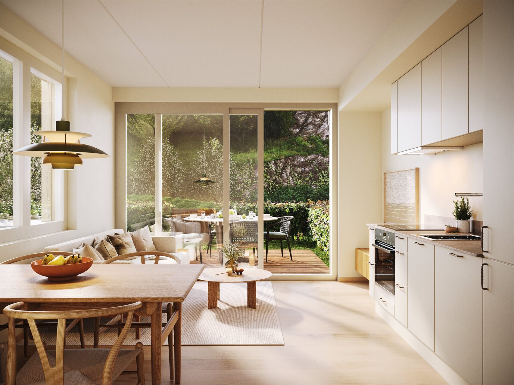 Tegninger og bilder i markedsføringsmateriell er kun illustrasjoner og kan avvike noe i forhold til plan – og fasadetegninger som vedlegges. Selger leverer ikke; innredninger, lamper, øvrig belysningsutstyr, markiser/solavskjerming, tepper, møbler og annet tilbehør, med mindre det fremgår av leveransebeskrivelse samt kontraktstegninger. 3D og VR-modellen er basert på skisser og regulert volum og kun ment som en illustrasjon. Endringer vil skje.