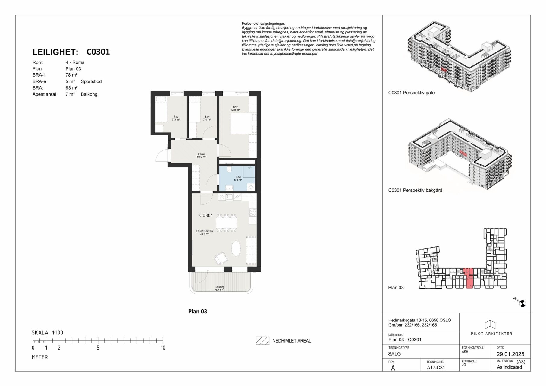Kjøper er gjort kjent med at alle 3D-presentasjoner, digitale modeller, planer, skisser, bilder i prospekt, tilvalgspresentasjon og annet salgsmateriell er av illustrativ karakter, og utarbeidet før gjennomført detaljprosjektering. Materialet kan derfor vise bygningsvolumer, innredning, beplantning og detaljer mv. som ikke inngår i avtalen.