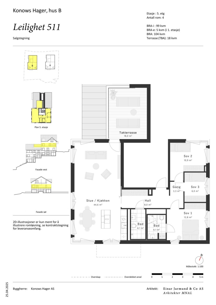 Tegninger og bilder i markedsføringsmateriell er kun illustrasjoner og kan avvike noe i forhold til plan – og fasadetegninger som vedlegges. Selger leverer ikke; innredninger, lamper, øvrig belysningsutstyr, markiser/solavskjerming, tepper, møbler og annet tilbehør, med mindre det fremgår av leveransebeskrivelse samt kontraktstegninger. 3D og VR-modellen er basert på skisser og regulert volum og kun ment som en illustrasjon. Endringer vil skje.