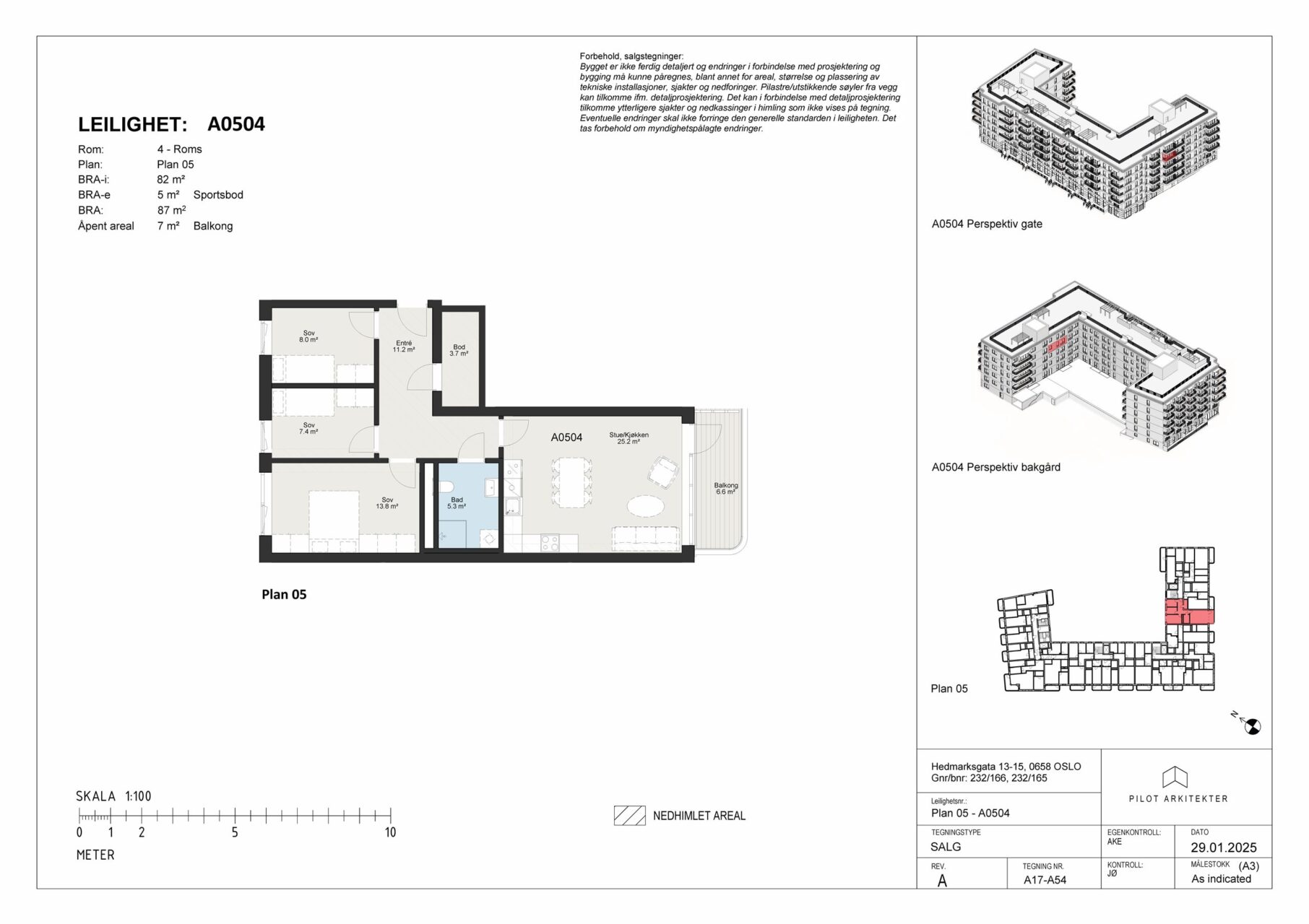 Kjøper er gjort kjent med at alle 3D-presentasjoner, digitale modeller, planer, skisser, bilder i prospekt, tilvalgspresentasjon og annet salgsmateriell er av illustrativ karakter, og utarbeidet før gjennomført detaljprosjektering. Materialet kan derfor vise bygningsvolumer, innredning, beplantning og detaljer mv. som ikke inngår i avtalen.