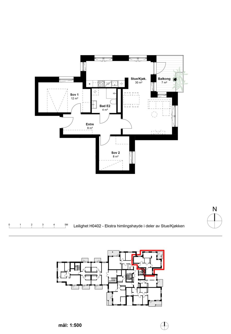 Oslobolig 106-H0203 er en flott 3-roms hjørneleilighet i 2. etasje med fritt utsyn. Leiligheten har to soverom og et flislagt bad med gulvvarme. Videre er det en åpen stue- kjøkkenløsning hvor kjøkkenet ligger tilbaketrukket i egen sone. Kjøkkenet leveres fra HTH med integrerte hvitevarer. Rommet har vinduer i to himmelretninger, noe som bidrar til en god romfølelse.