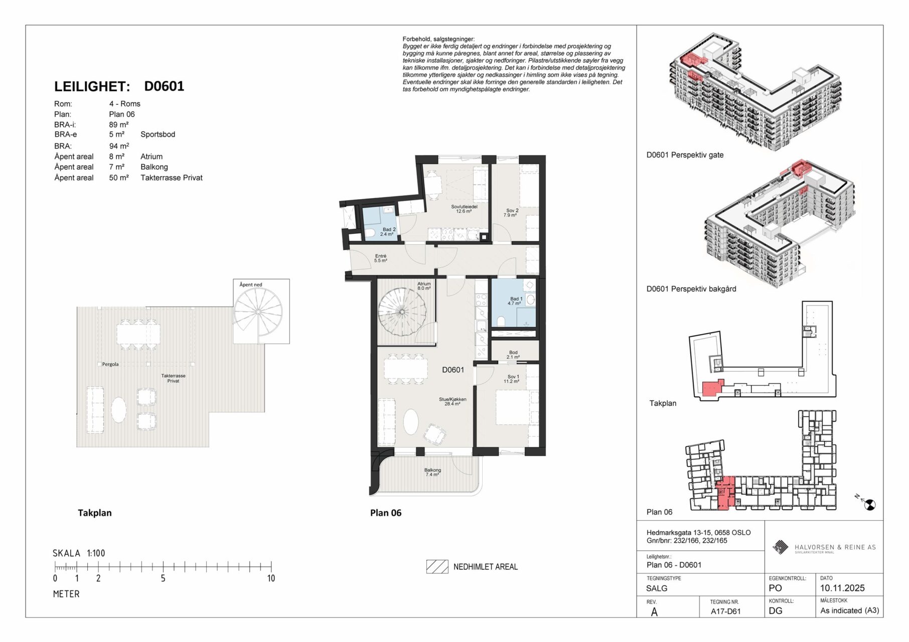 Kjøper er gjort kjent med at alle 3D-presentasjoner, digitale modeller, planer, skisser, bilder i prospekt, tilvalgspresentasjon og annet salgsmateriell er av illustrativ karakter, og utarbeidet før gjennomført detaljprosjektering. Materialet kan derfor vise bygningsvolumer, innredning, beplantning og detaljer mv. som ikke inngår i avtalen.