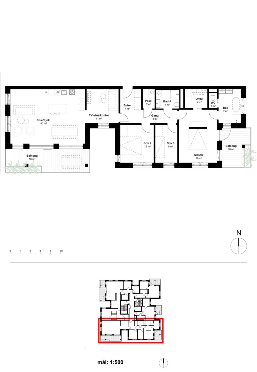 Videre har man en åpen stue- kjøkkenløsning med kjøkkenøy og plass for stort spisebord og sofagruppe. I tillegg har leiligheten også en egen tv-stue/hjemmekontor om ønskelig. Fra stue er det utgang til balkong på ca. 18 kvm. Leiligheten vender mot syd og byr på flotte lys- og solforhold, samt fantastisk utsikt over byen og fjorden. Det er mulighet for kjøp av parkeringsplass, i anlegg under bygget, til denne leiligheten.