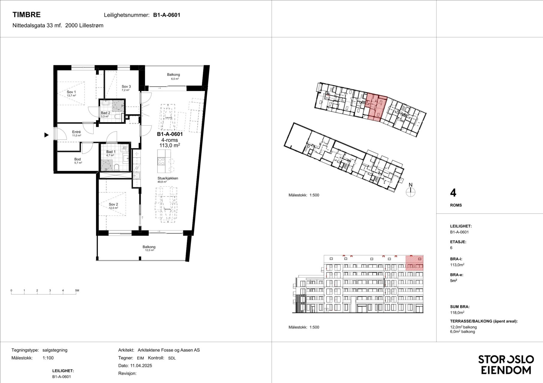 Arealbeskrivelse; De oppgitte arealer er hentet fra opprinnelige plantegninger fra utbygger. Vedlagte plantegninger er ikke målbare. Arealet er beregnet ut fra Norsk standard NS 3940:2023. BRA-i: Internt arealet innenfor boligens omsluttende vegger, inkludert sjakt. BRA-e: Eksternt areal som boligen har eksklusiv bruksrett til, men som ikke ligger i boligen, f.eks. kjellerbod. BRA-b: Areal for innglasset balkong med veggareal. Total BRA = Summen av BRA-i, BRA-e og BRA-b. TBA er areal på terrasse og balkong. Arealet oppgis ved salg, men inngår ikke i BRA. Oppgitt romareal er netto romareal. De oppgitte arealer er å betrakte som cirka-arealer. Partene har ingen krav mot hverandre dersom arealet skulle vise seg å være 5 % mindre / større enn det oppgitte areal.
