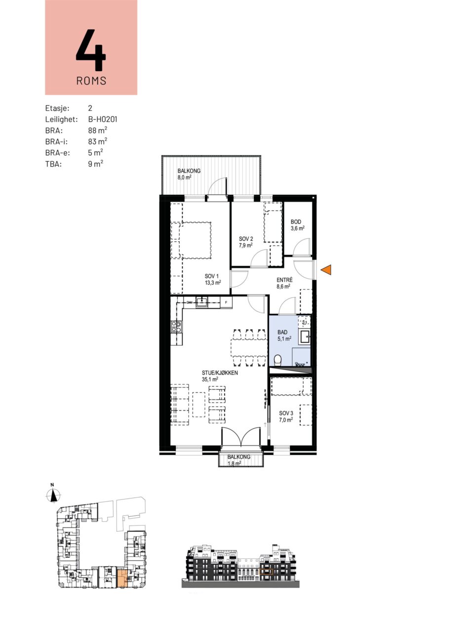 Totalt bruksareal BRA: 88 kvm