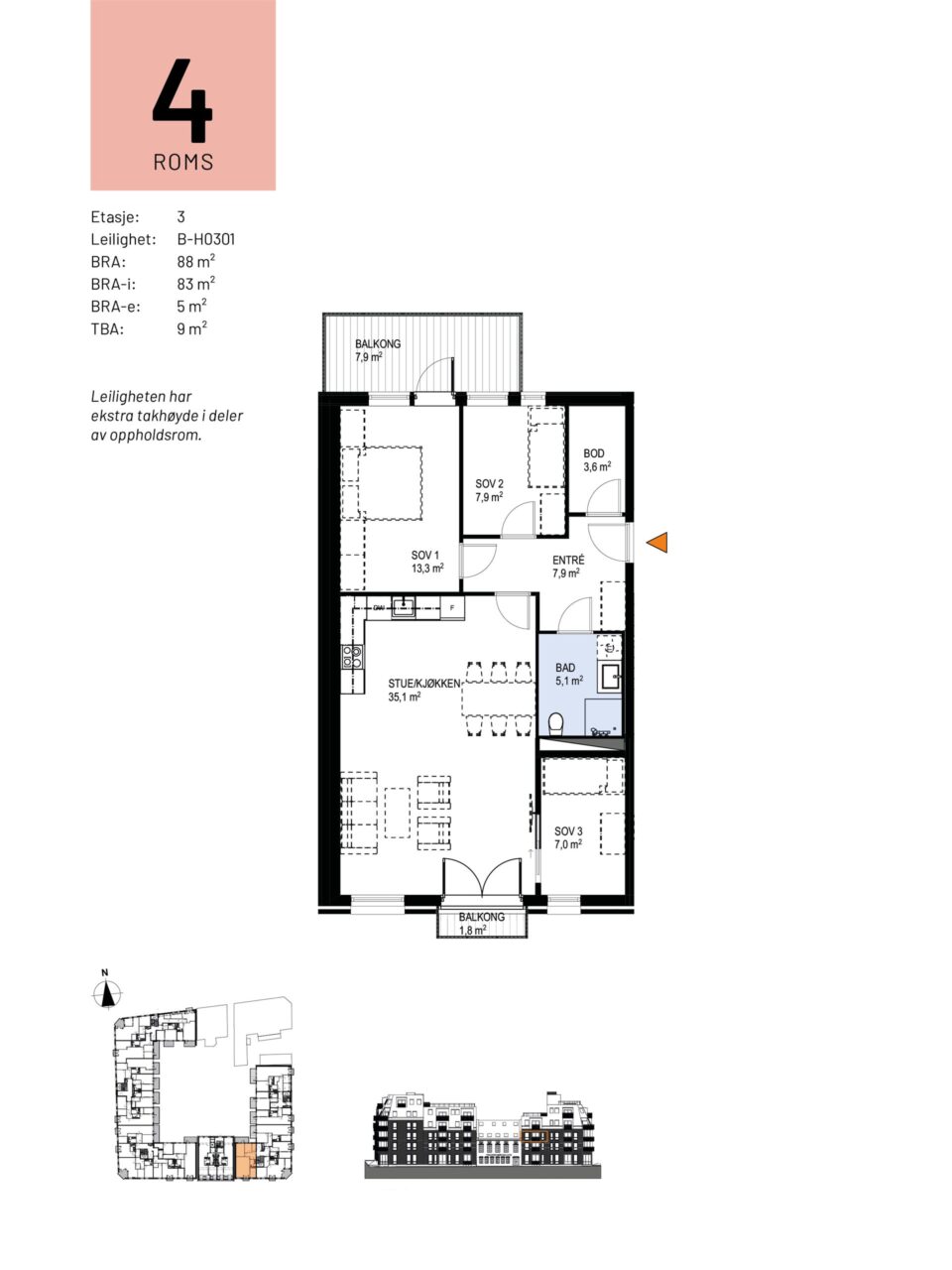 Velkommen til leilighet B-H0301 – Flott 4-roms selveierleilighet beliggende i 3. etasje. Leiligheten har en gjennomtenkt og god planløsning med stor stue med ekstra takhøyde, åpen kjøkkenløsning og utgang til sydvendt balkong. Stort hovedsoverom vendt mot rolig bakgård og utgang til balkong. 2 soverom med plass til garderober. Entré med plass til garderobe og inngang til delikat baderom og innvendig bod. Leilighetene har en gjennomgående god standard med enstavs eikeparkett med vannbåren gulvvarme, delikat kjøkkeninnredning fra Sigdal eller tilsvarende med integrerte hvitevarer og balansert ventilasjon. Meget sentral beliggenhet i hjertet av Drammen.