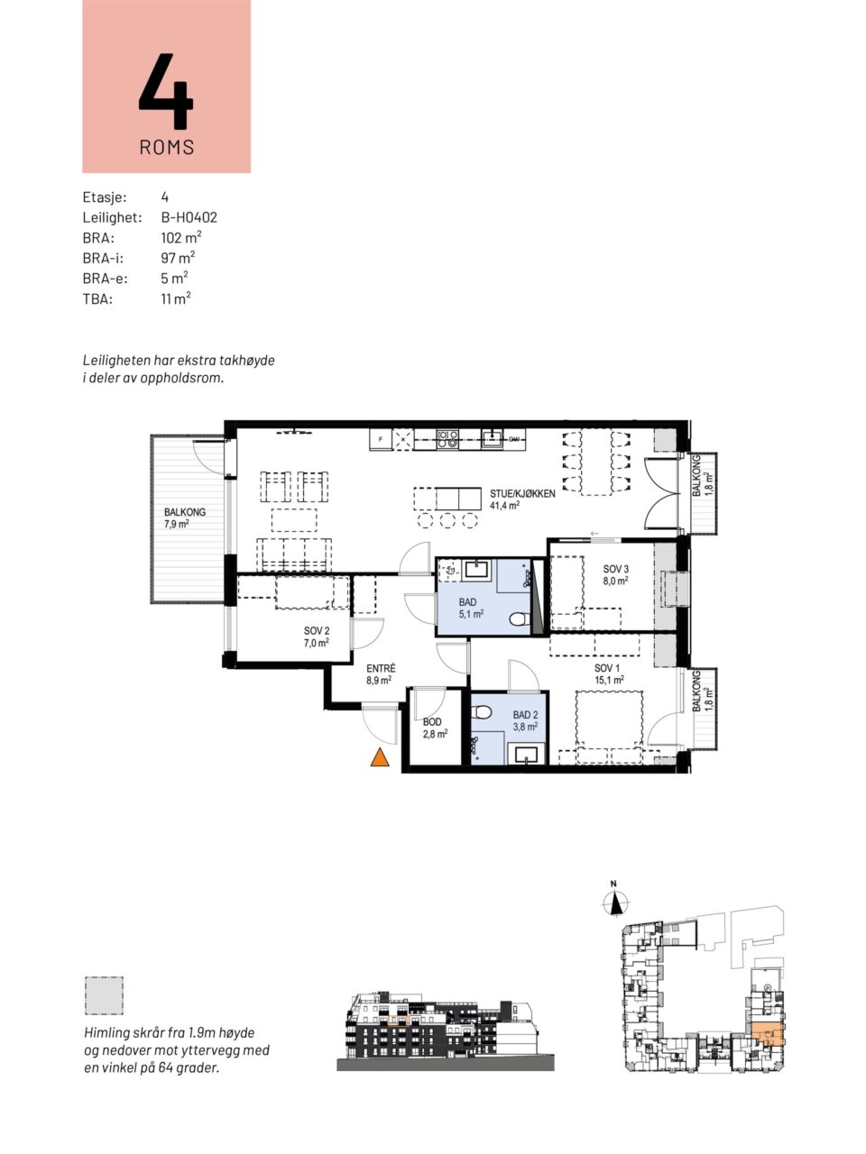 Totalt bruksareal BRA: 102 kvm