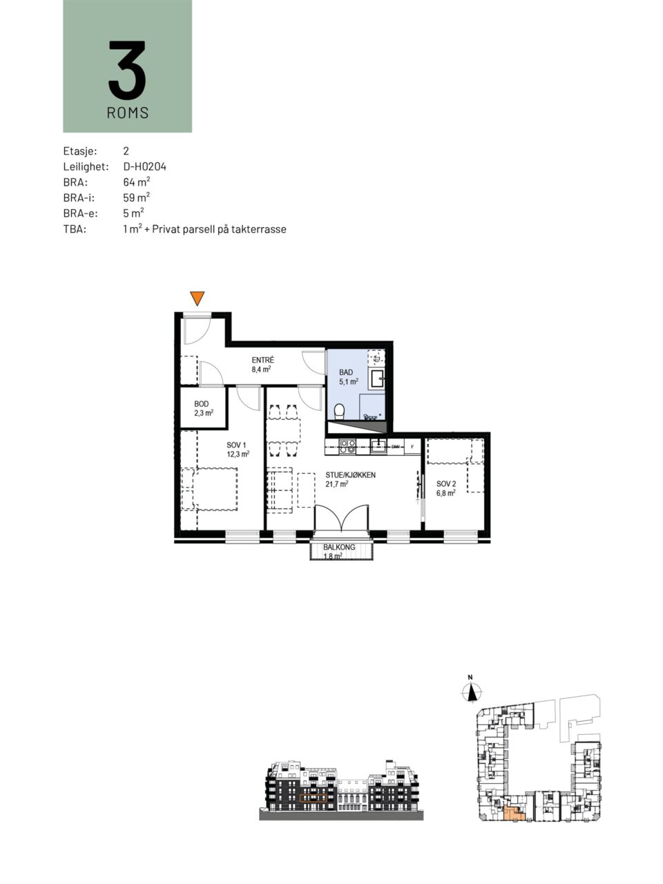 TBA: 1 kvm + PRIVAT PARSELL PÅ TAKTERRASSE