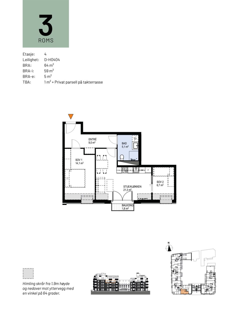 TBA: 1 kvm + PRIVAT PARSELL PÅ TAKTERRASSE
