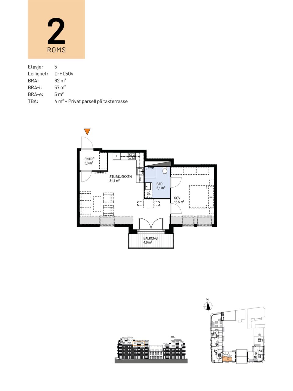 TBA: 4 kvm + PRIVAT PARSELL PÅ TAKTERRASSE