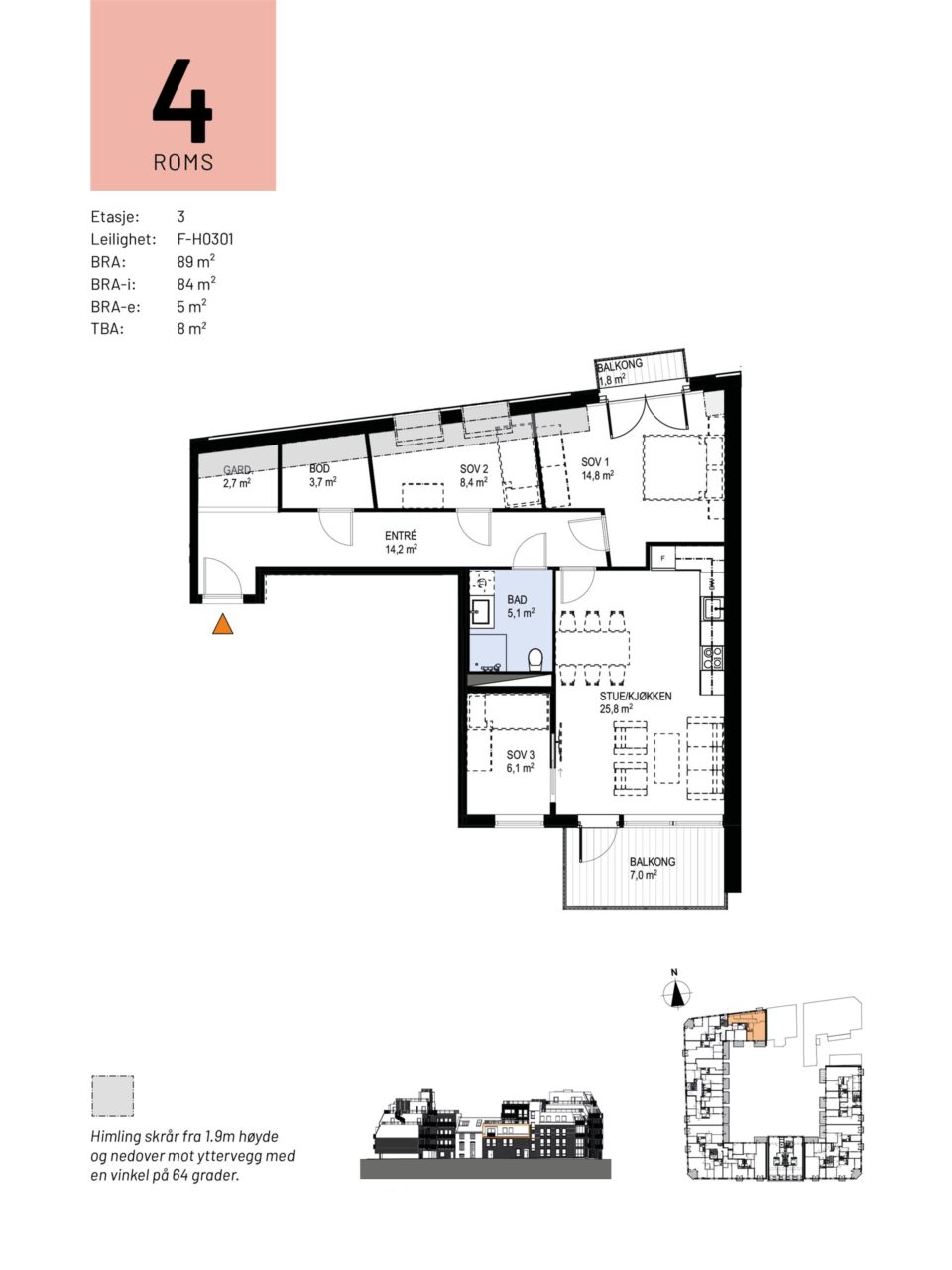Totalt bruksareal BRA: 89 kvm