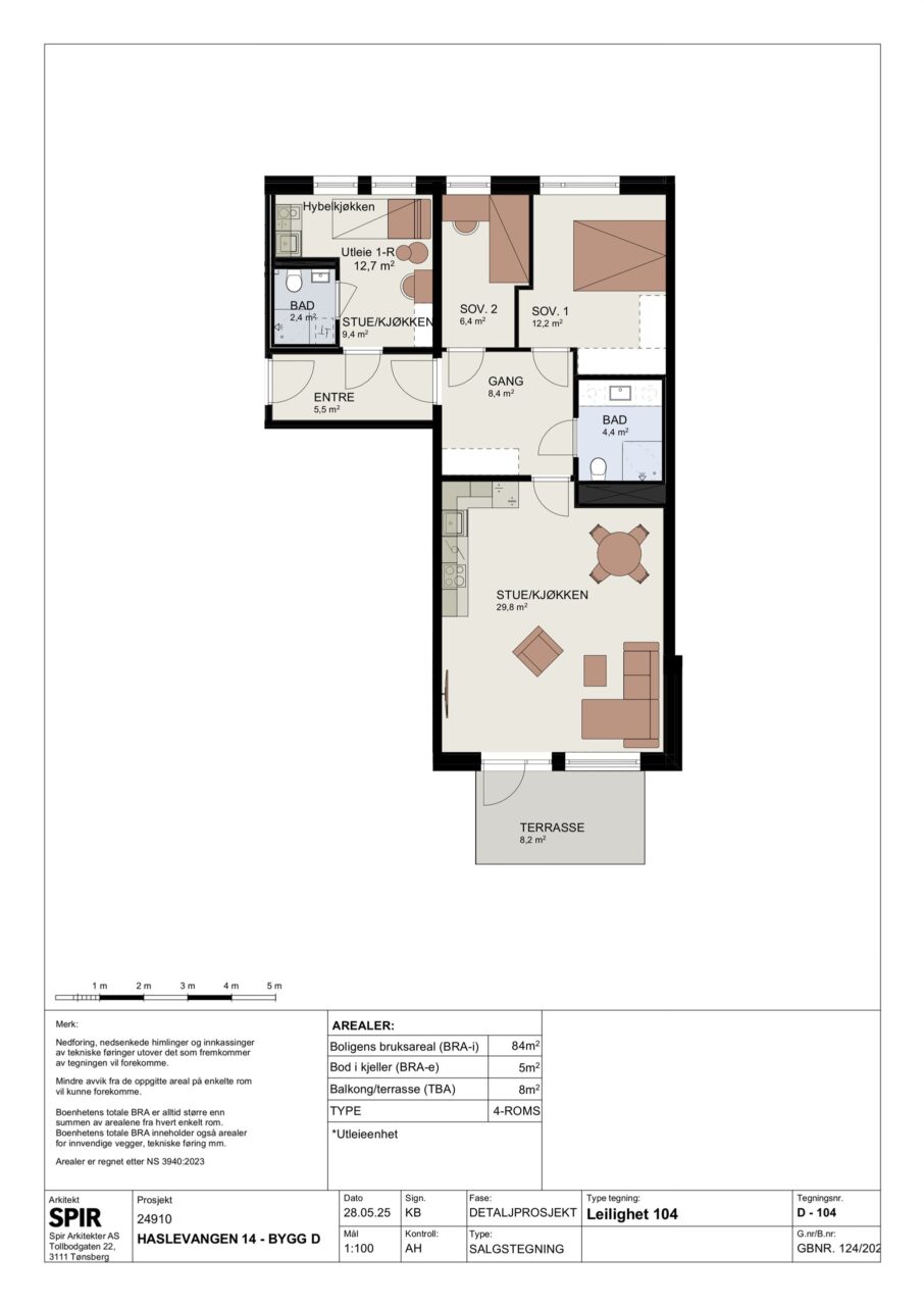 Haslevangen D104 – 4-roms med utleiedel – Solrik syd-vestvendt markterrasse