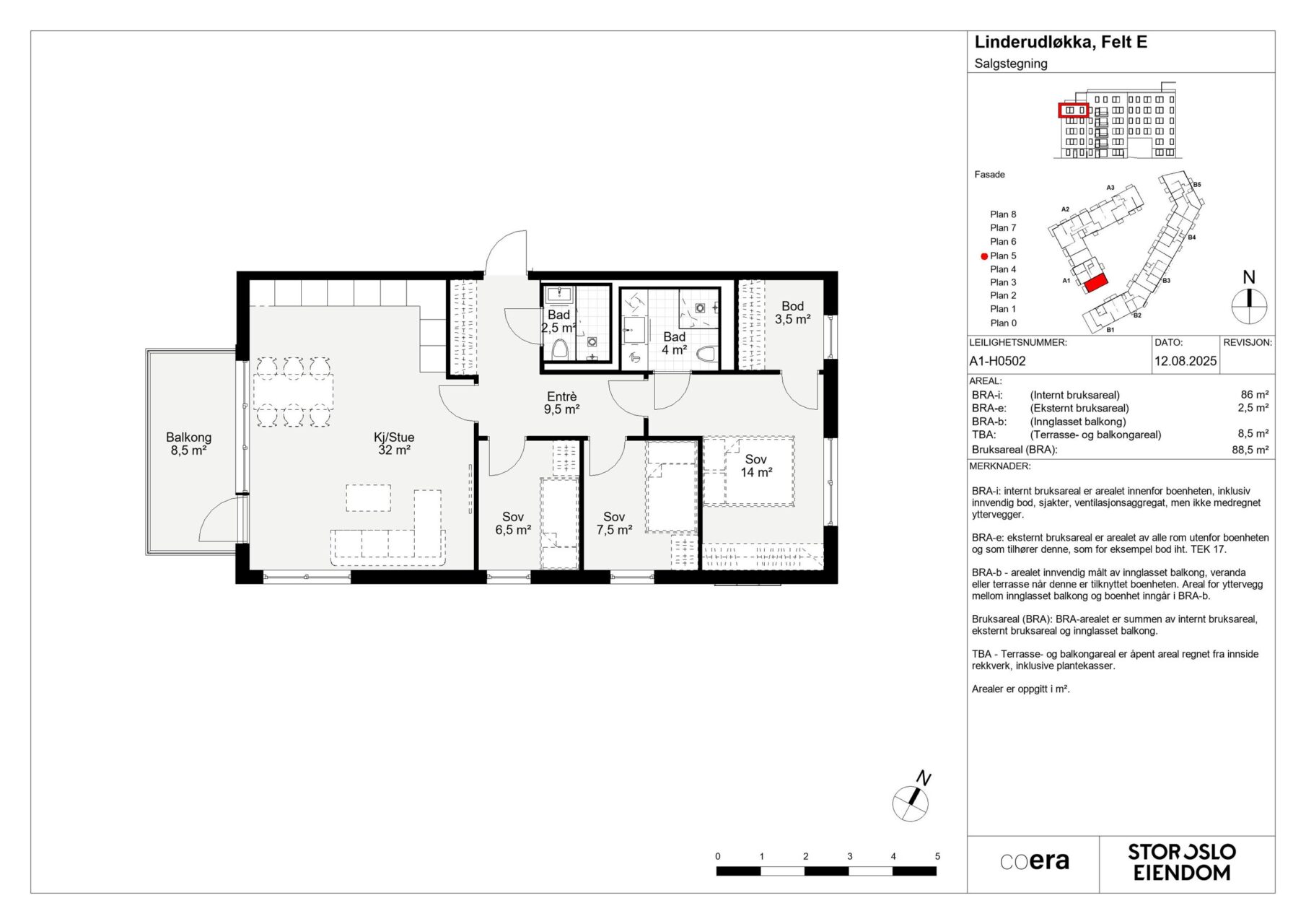 Fra 1. januar 2024 trådte en ny arealstandard i kraft “Areal og Volumberegninger for bygninger” som ble publisert av Norsk Standard 26.10.23. De nye arealbegrepene oppgis som ulike former for BRA, som forklart under. Arealene er oppgitt i hele tall iht. avrundingsregler: