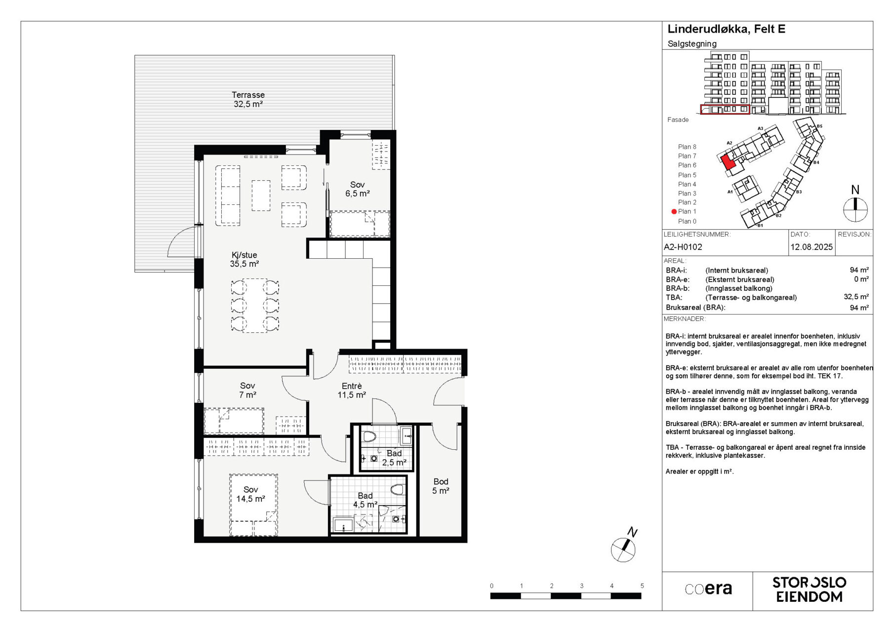 Fra 1. januar 2024 trådte en ny arealstandard i kraft “Areal og Volumberegninger for bygninger” som ble publisert av Norsk Standard 26.10.23. De nye arealbegrepene oppgis som ulike former for BRA, som forklart under. Arealene er oppgitt i hele tall iht. avrundingsregler: