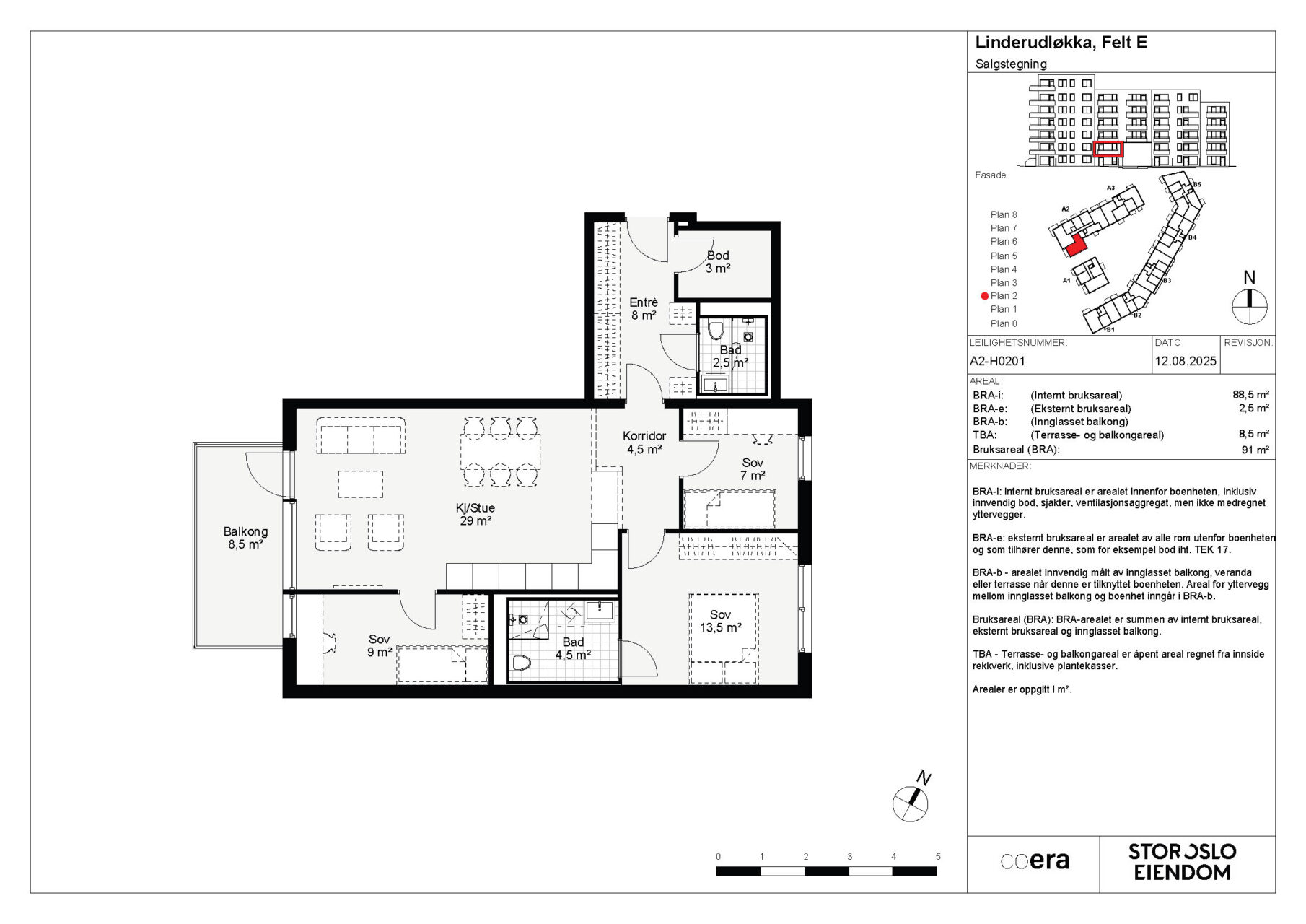 Fra 1. januar 2024 trådte en ny arealstandard i kraft “Areal og Volumberegninger for bygninger” som ble publisert av Norsk Standard 26.10.23. De nye arealbegrepene oppgis som ulike former for BRA, som forklart under. Arealene er oppgitt i hele tall iht. avrundingsregler: