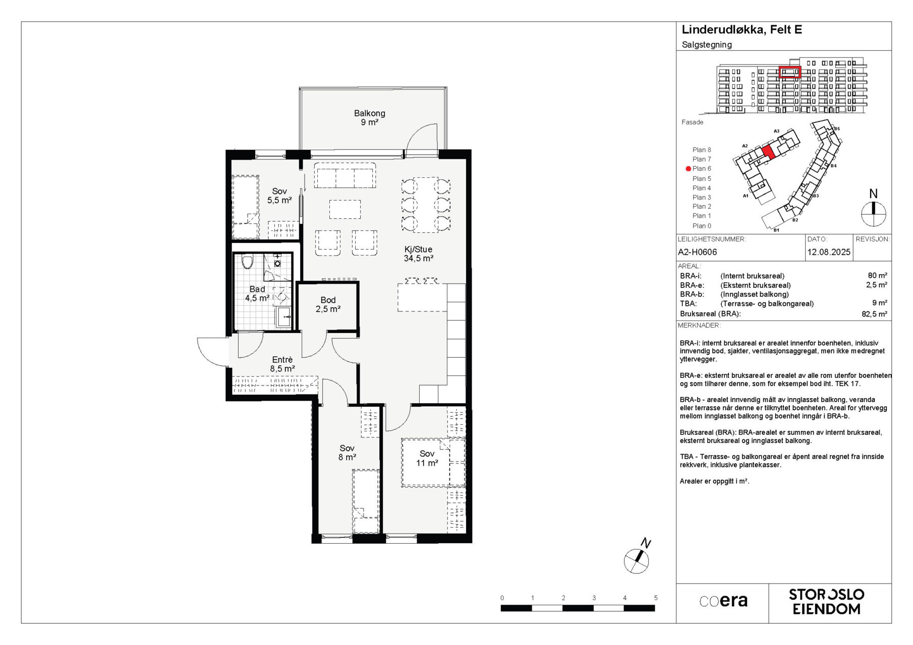 Fra 1. januar 2024 trådte en ny arealstandard i kraft “Areal og Volumberegninger for bygninger” som ble publisert av Norsk Standard 26.10.23. De nye arealbegrepene oppgis som ulike former for BRA, som forklart under. Arealene er oppgitt i hele tall iht. avrundingsregler: