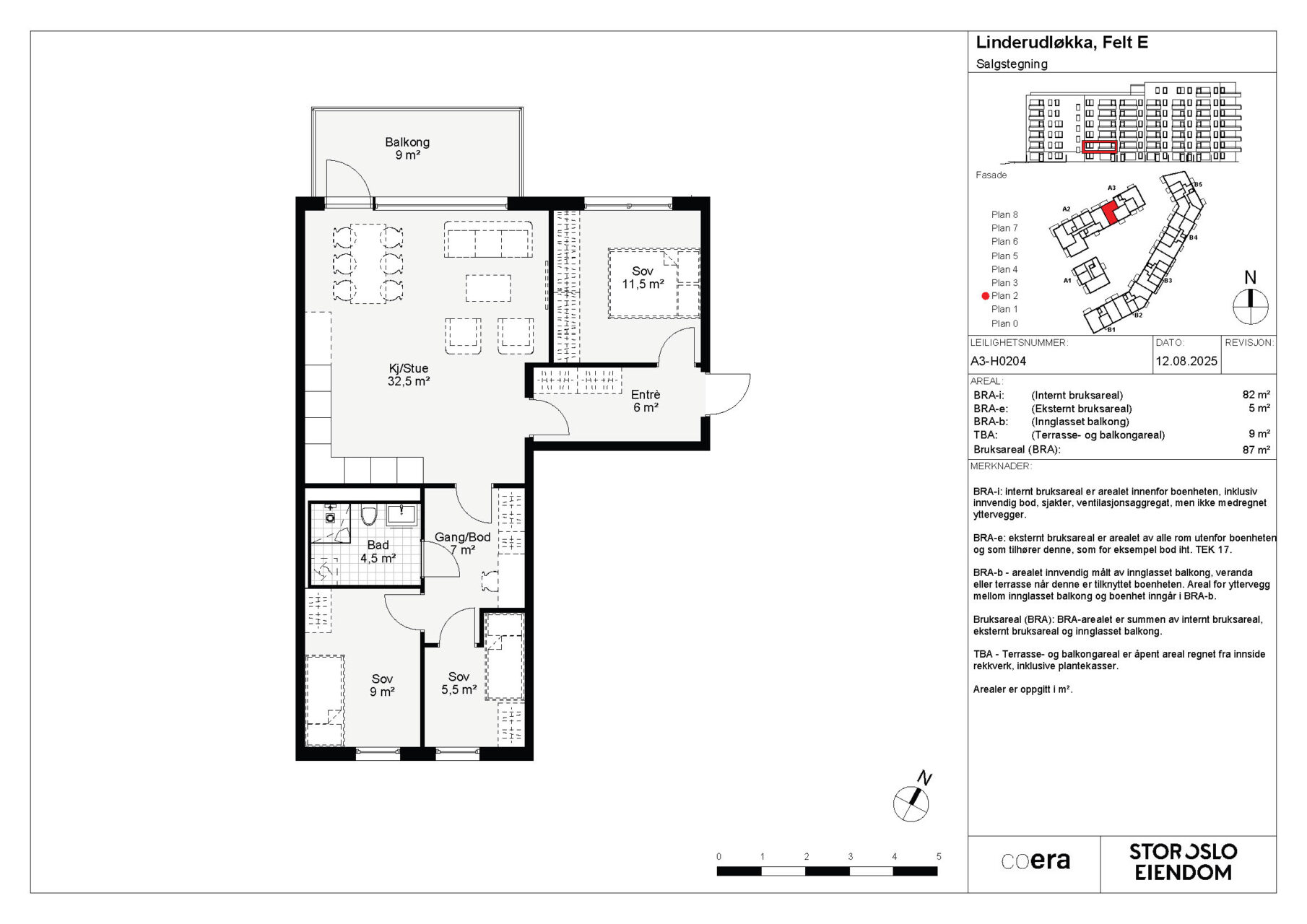 Fra 1. januar 2024 trådte en ny arealstandard i kraft “Areal og Volumberegninger for bygninger” som ble publisert av Norsk Standard 26.10.23. De nye arealbegrepene oppgis som ulike former for BRA, som forklart under. Arealene er oppgitt i hele tall iht. avrundingsregler: