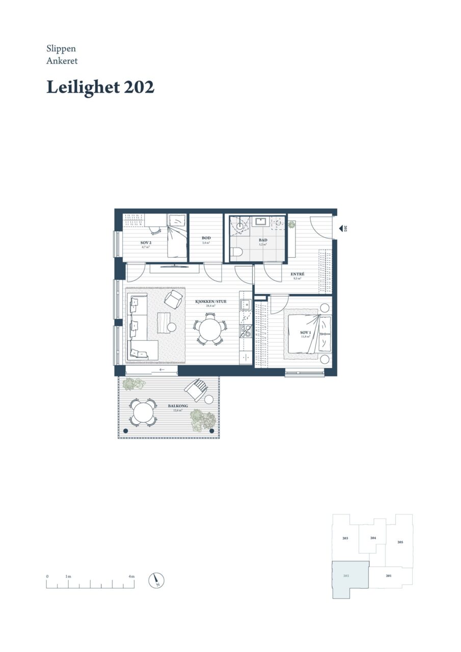 Leilighetene på Slippen har gjennomtenkte planløsninger og nesten alle vil se sjøen. Det leveres en gjennomgående god standard med bla. kjøkkeninnredning fra Drømmekjøkkenet, integrerte hvitevarer fra Siemens, balansert ventilasjon og lekre storformatfliser på baderommene.